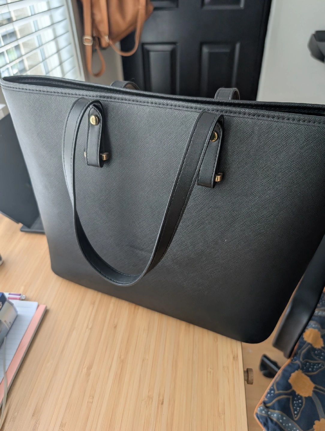 Selling a black tote bag. It's in great condition and perfect for everyday use. It's a stylish and practical bag!