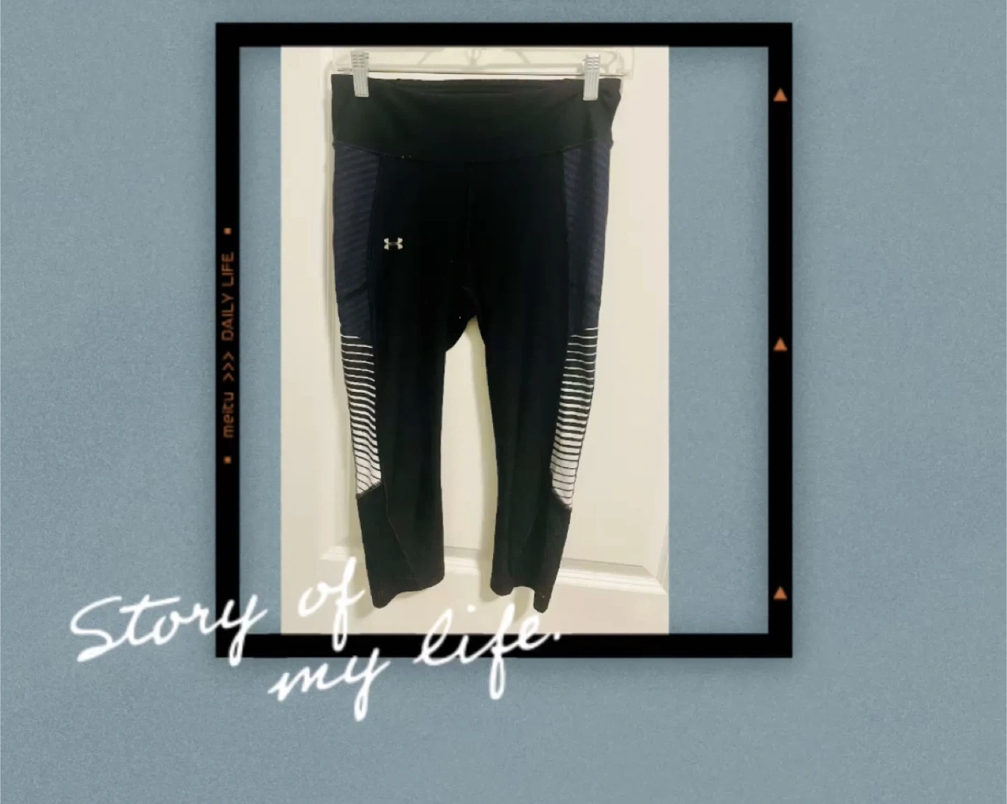 Selling a pair of Under Armour athletic leggings in black. They feature a comfortable fit and stylish design, perfect for workouts or casual wear. The leggings have some navy and white accents.