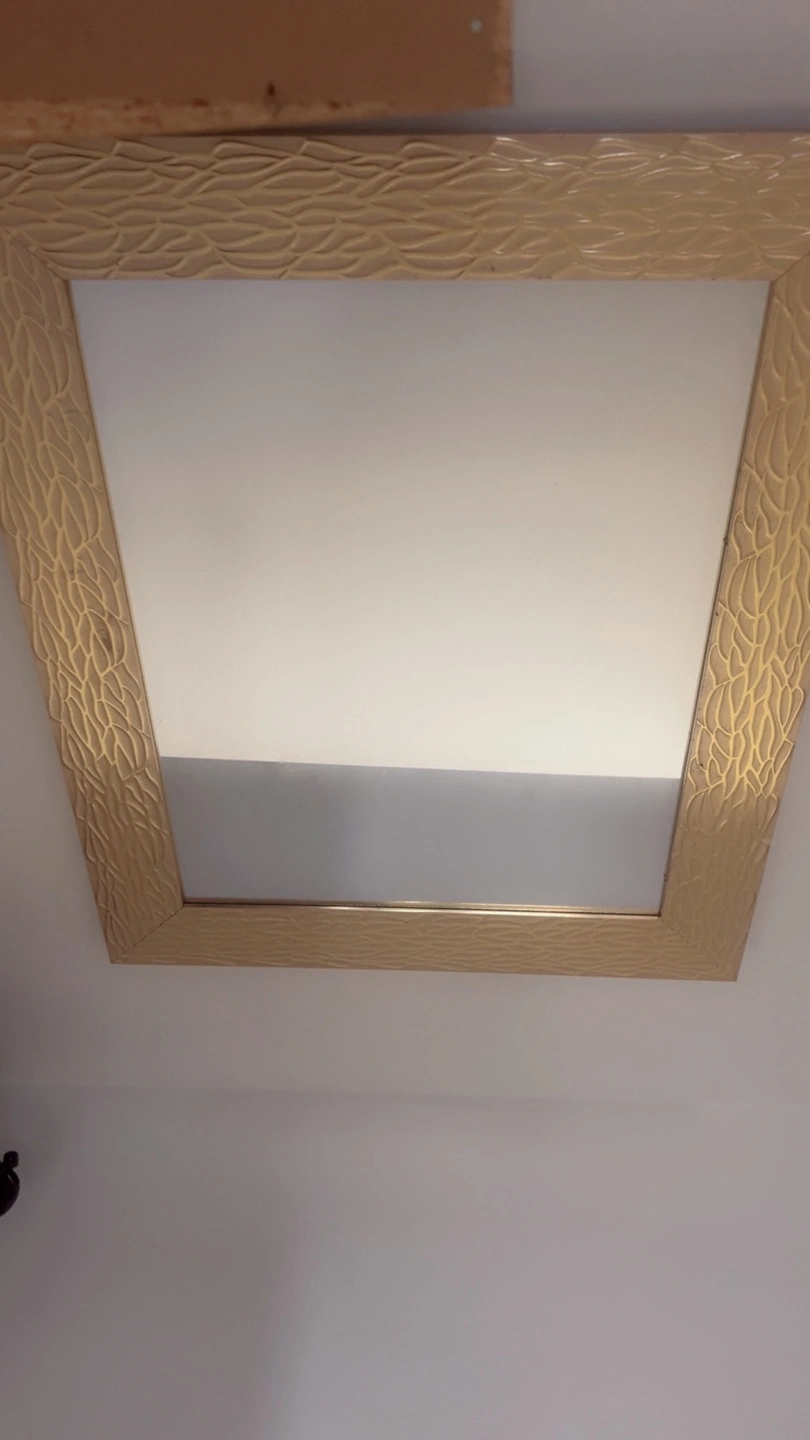 Selling a stylish wall mirror featuring a unique gold textured frame. It's in great shape and ready to add a touch of elegance to your home decor