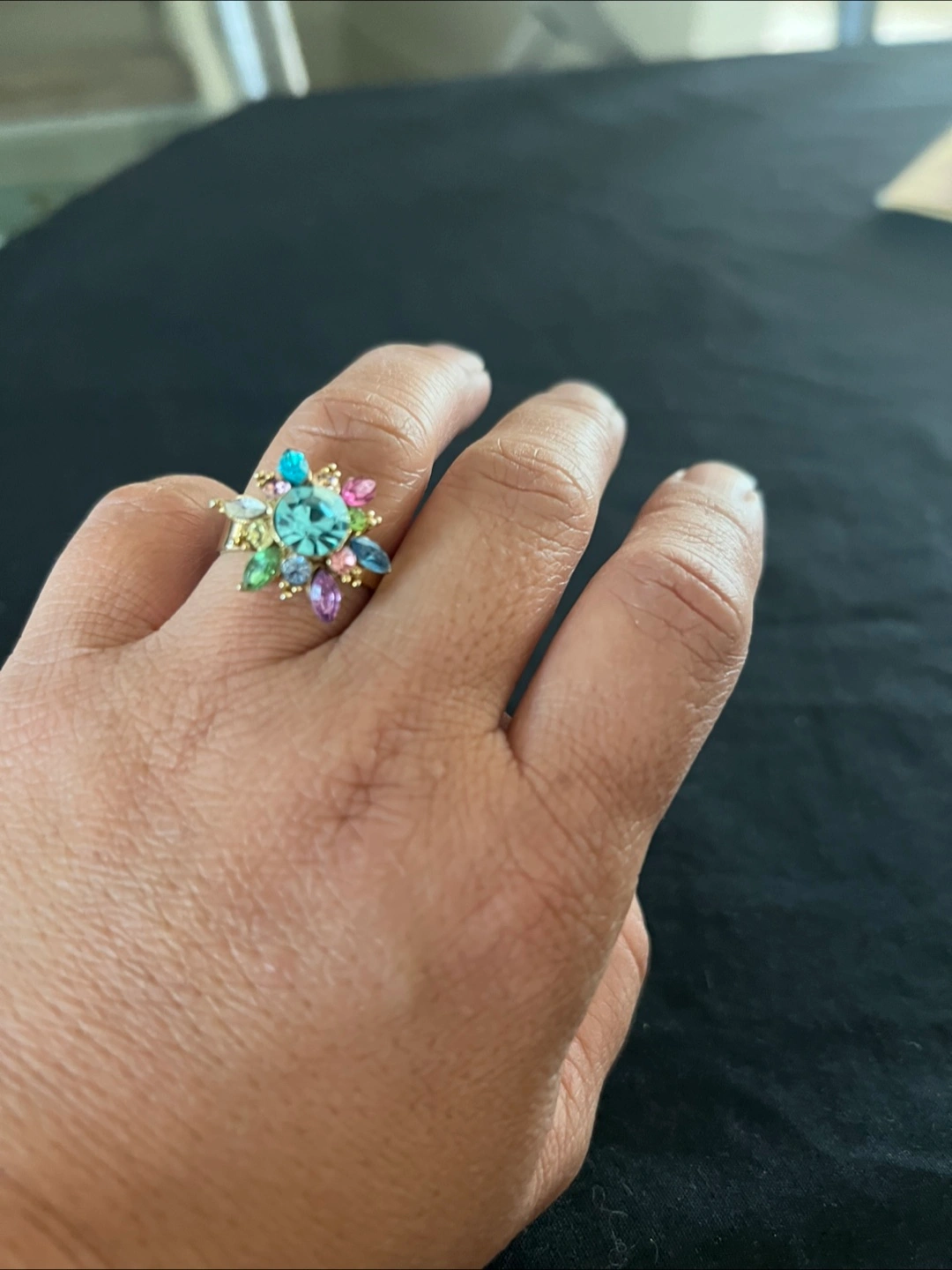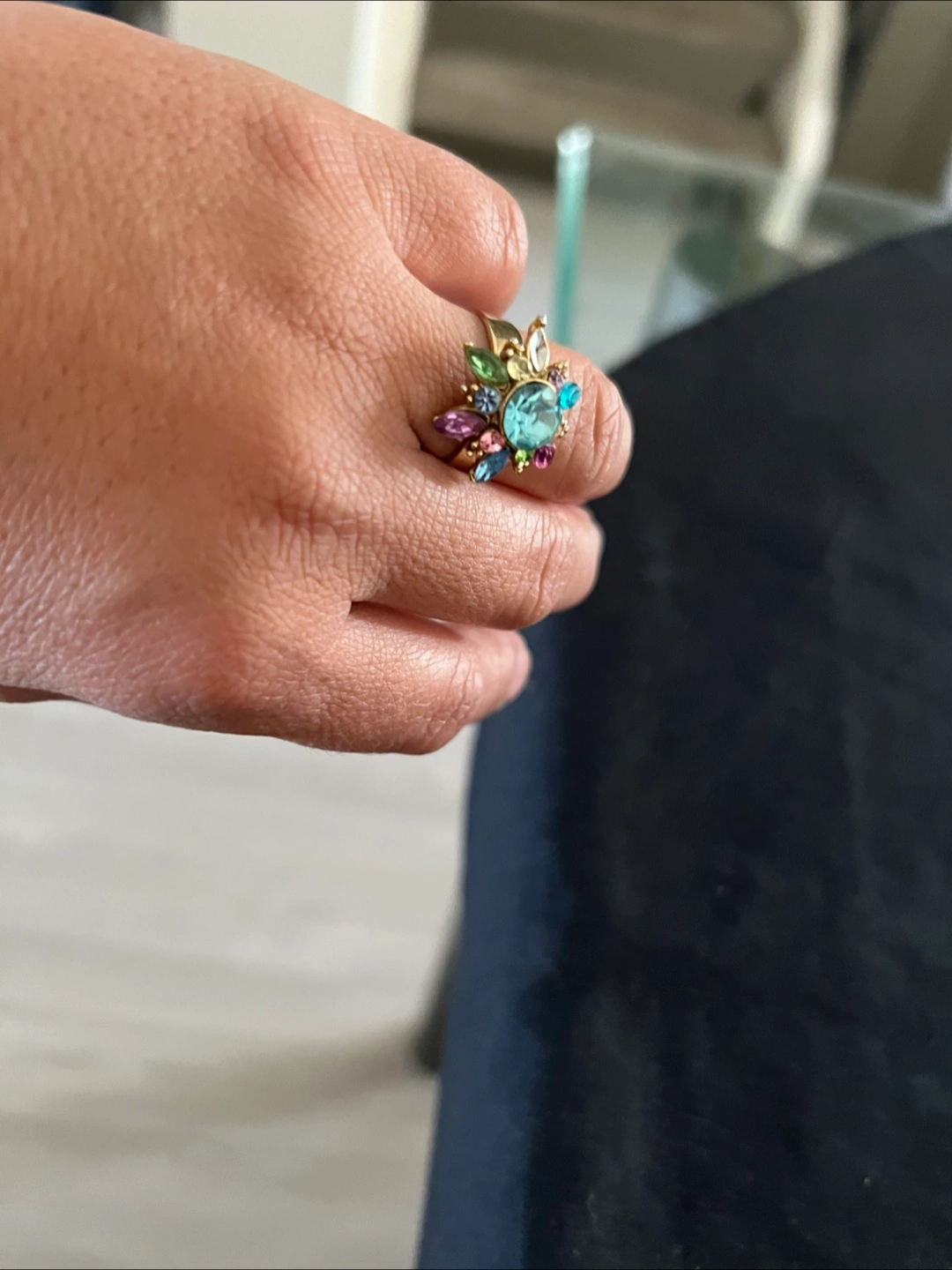Selling a beautiful ring with colourful gemstones. It's in great condition and would make a lovely addition to anyone's jewelry collection! Pick up only