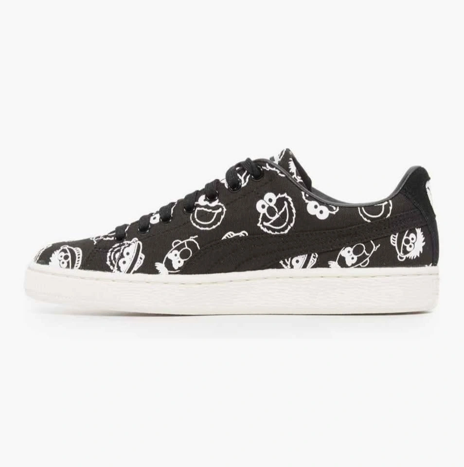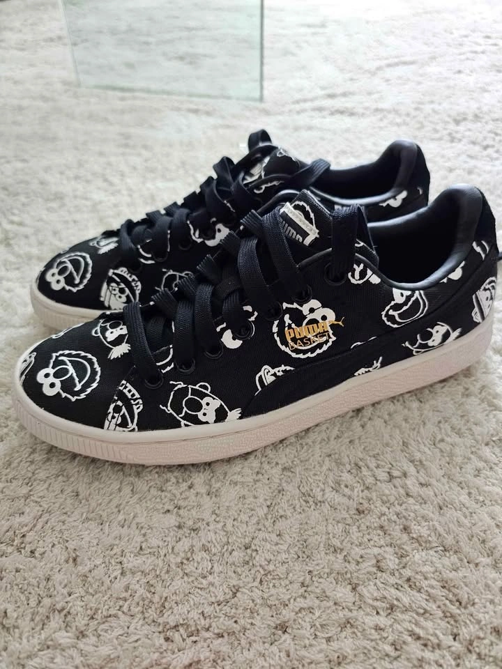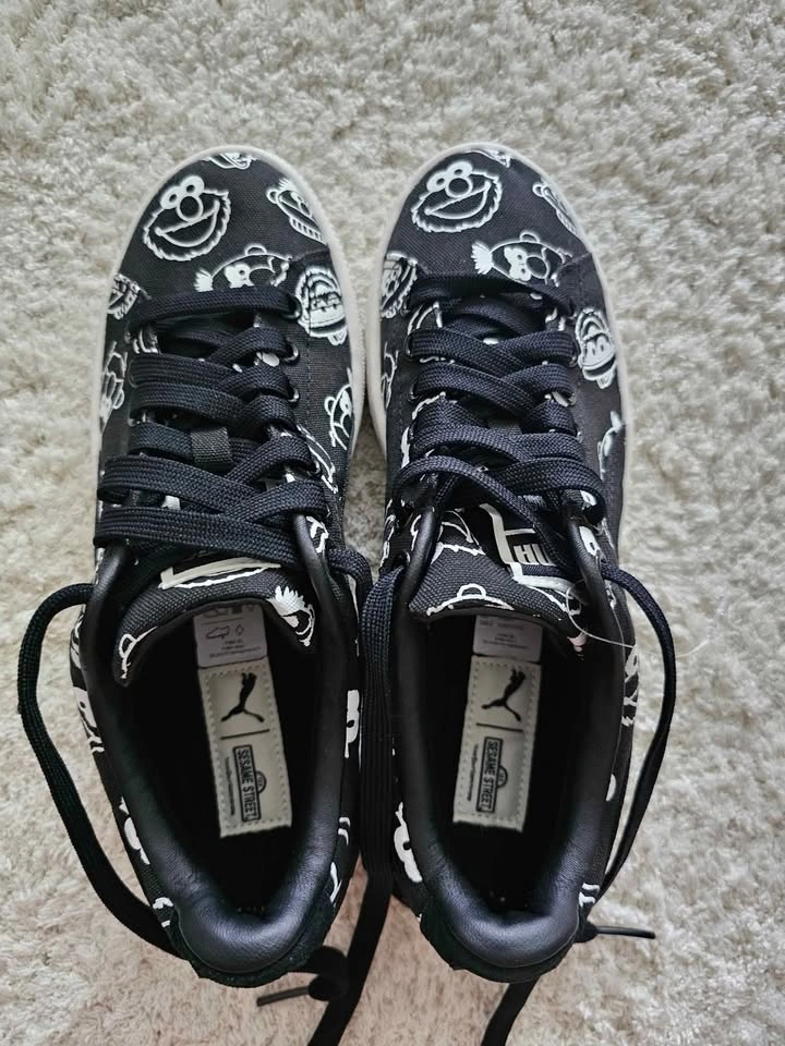 BNWOT. Size 5.5 US/37.5 EU Pick up Port Coquitlam Part of the limited-edition Sesame Street collaboration, low-top PUMA sneakers with an allover characters print on the canvas upper. Tonal grommets and laces over the padded tongue. Sewn to a rubber grip sole.