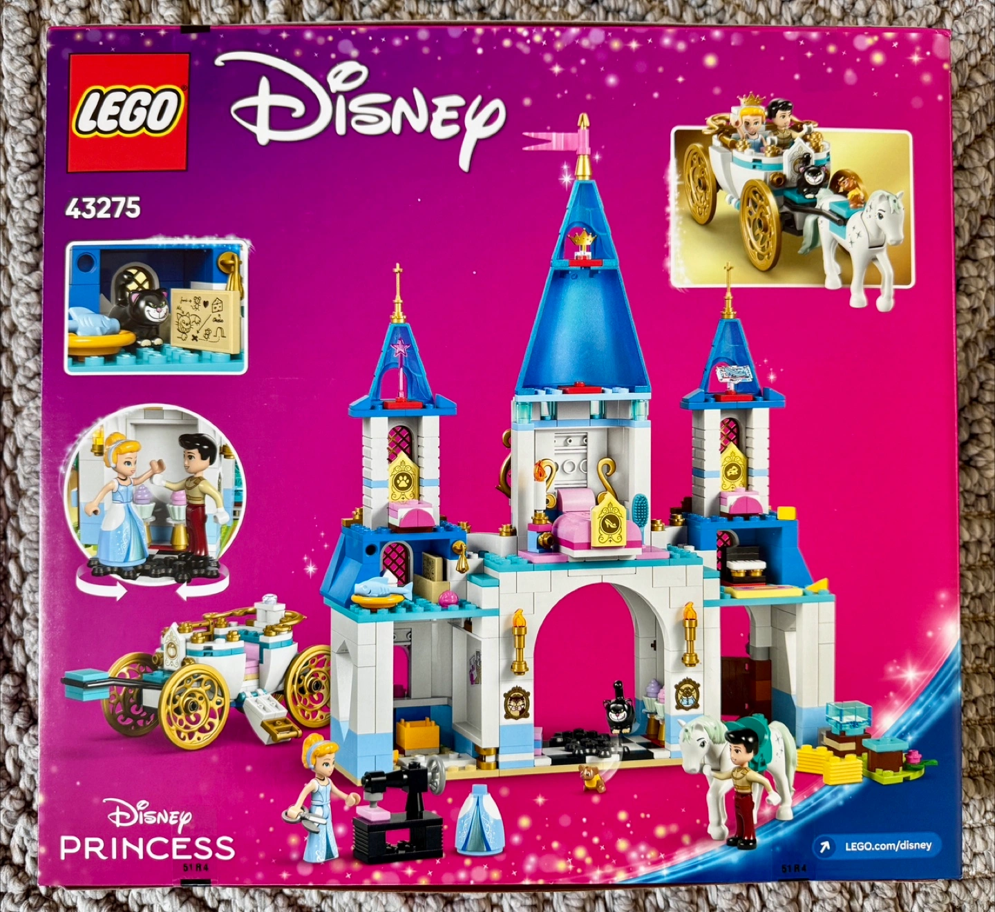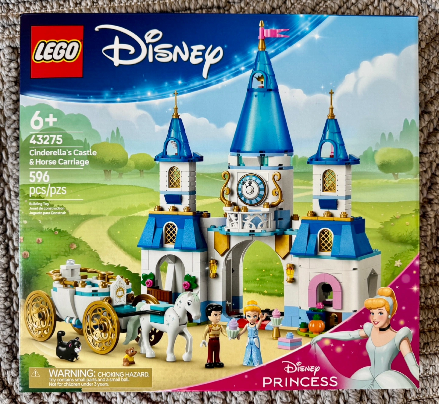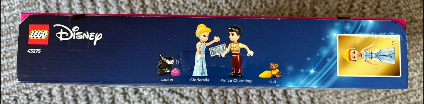 Selling a new LEGO Disney Cinderella's Castle & Horse Carriage set (43275)! This set is perfect for builders aged 6+. It includes 596 pieces to create a beautiful castle and horse-drawn carriage. Get ready for hours of imaginative play with Cinderella, Prince Charming, and their adorable animal friends like Lucifer and Gus. Unopened box.