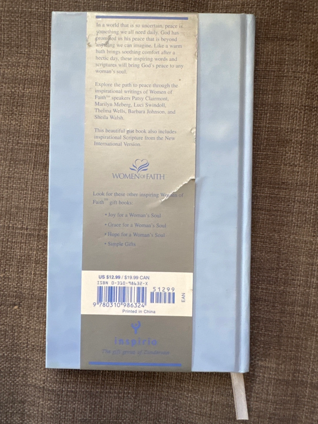 Offering an unused copy of "Peace for a Woman's Soul" book! It's a collection of inspirational writings for women, providing comfort and peace. Perfect for anyone seeking a little rest for their spirit.