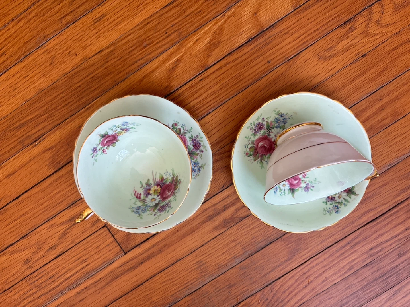 Selling a lovely Paragon fine bone china tea cup and saucer set. It features a delicate floral pattern and gold trim. Perfect for tea time or as a decorative piece!