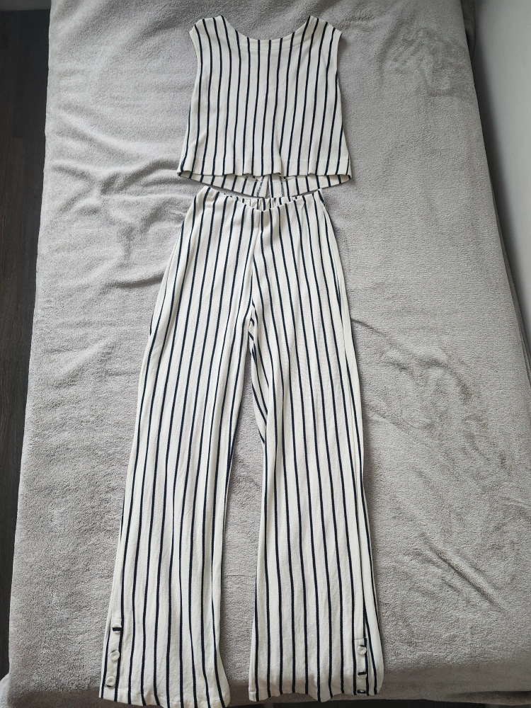 Selling a cute Zara Kids co-ord set! This set includes a striped top and pants, perfect for a stylish and comfy look for your little one. The size is for pants are13-14 and the top are 11-12.