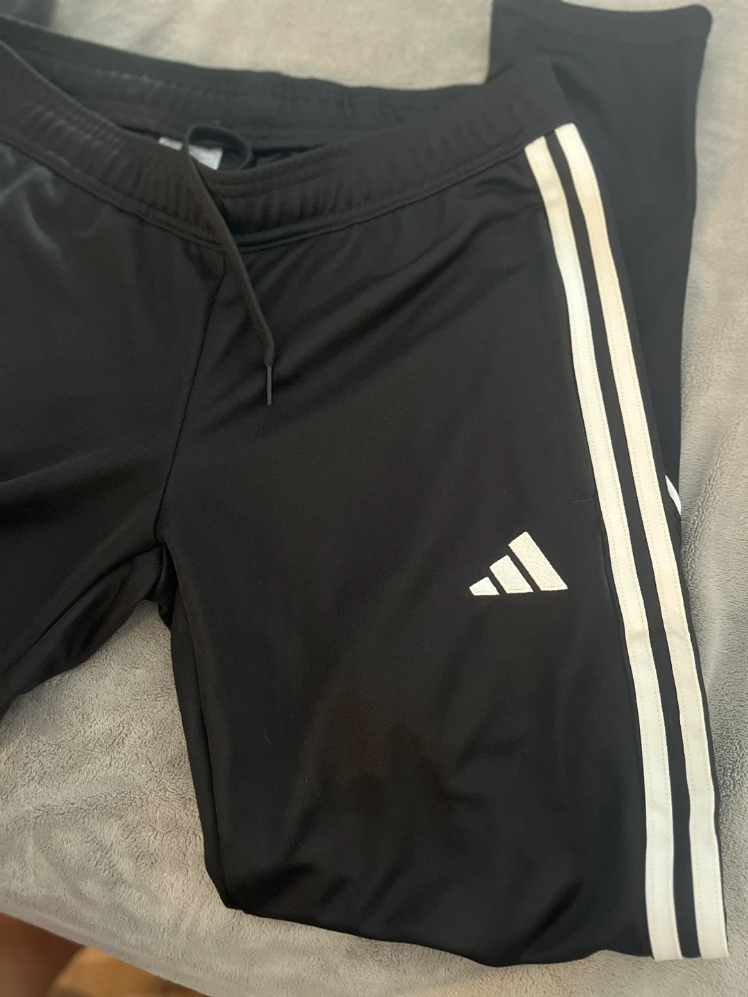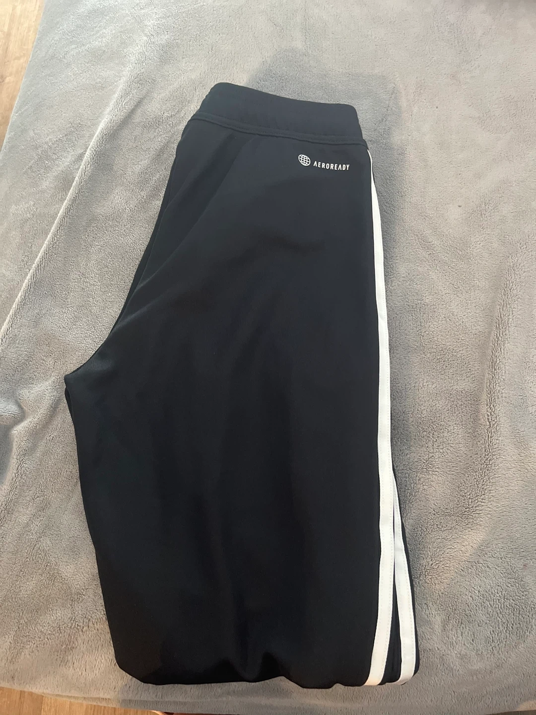 Selling a pair of Adidas black track pants in size small. These pants feature the classic three-stripe design in white and the Adidas logo. They are made with AEROREADY technology, so they are lightweight and breathable. Perfect for workouts or casual wear! ‼️New never worn