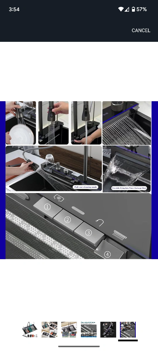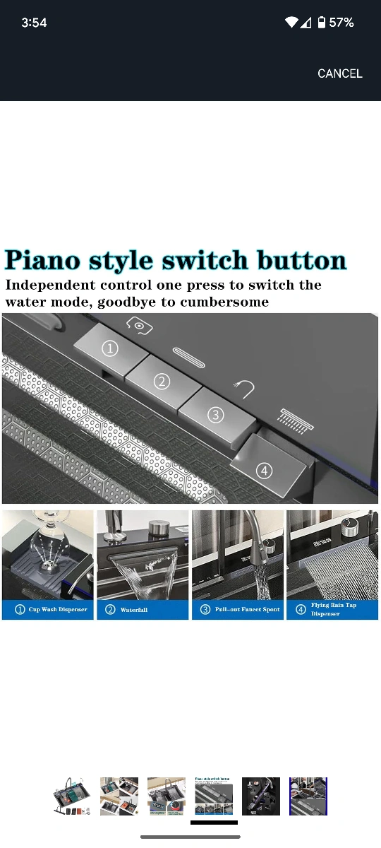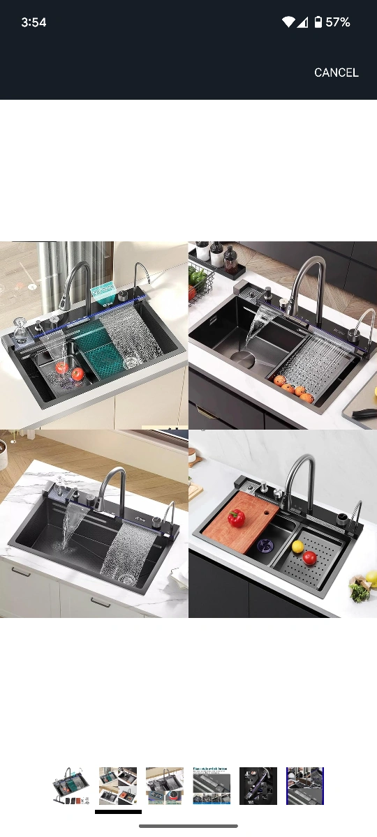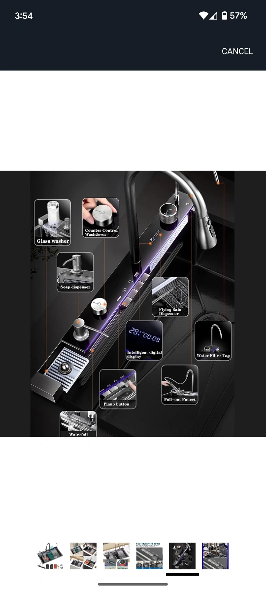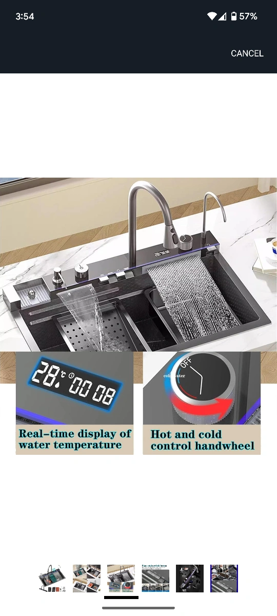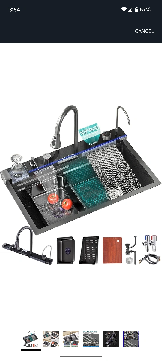 Check out this multifunctional kitchen sink! It features a waterfall faucet, a real-time display of water temperature, and a hot and cold control handwheel. It also has a glass washer, soap dispenser, and a pull-out faucet. it's brand new in the box!