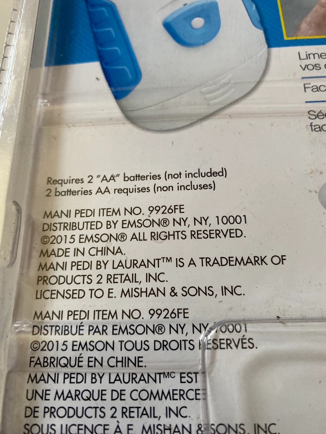Get beautiful nails in minutes with this Esplee Mani Pedi by Laurant! This device files and shapes nails instantly and is easy to clean and safe to use. Requires 2 AA batteries (not included).