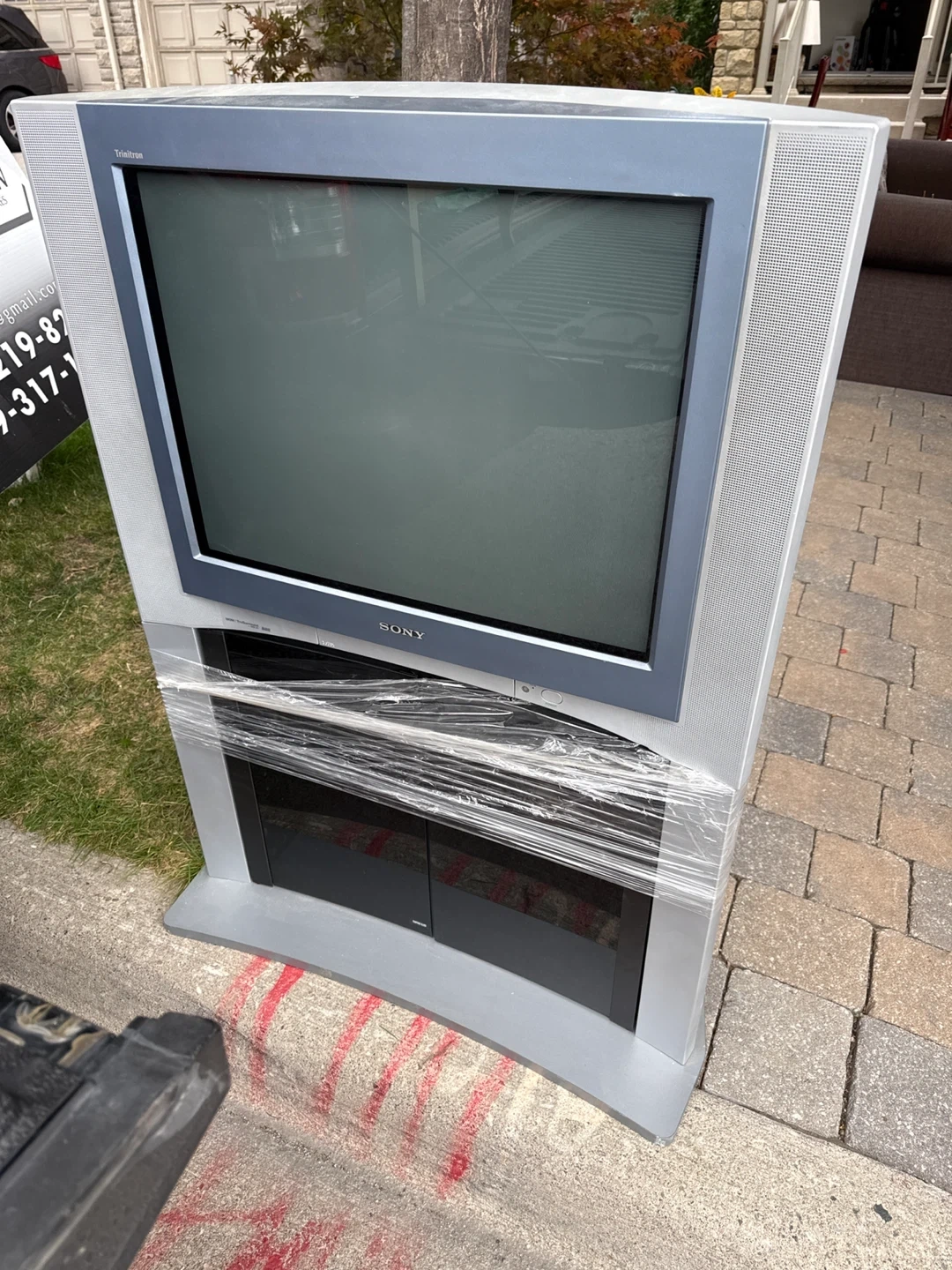 Selling a Sony Trinitron CRT TV complete with its stand! It's in good condition and ready for a new home. Perfect for retro gaming or anyone who appreciates the classic look of a CRT TV. With remote, no delivery