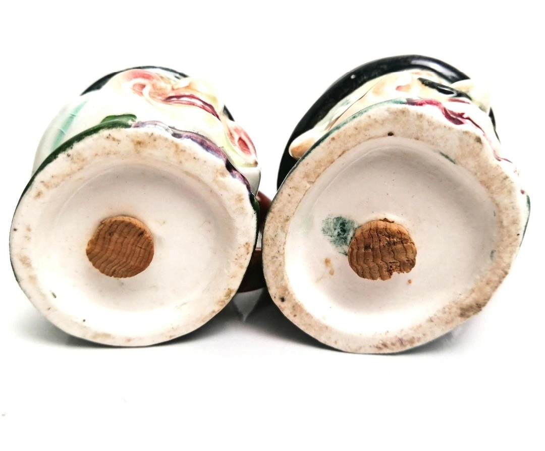A fabulous pair of Toby style salt and pepper shakers. Each measure approximately 2.25 inches in height. Good vintage condition, consistent with age. Some mild crazing. Cork stoppers. Excellent vintage charm. ๐ PICK UP TOWNLINE HWY 2 AREA ๐ CASH is preferred please โบ๏ธ