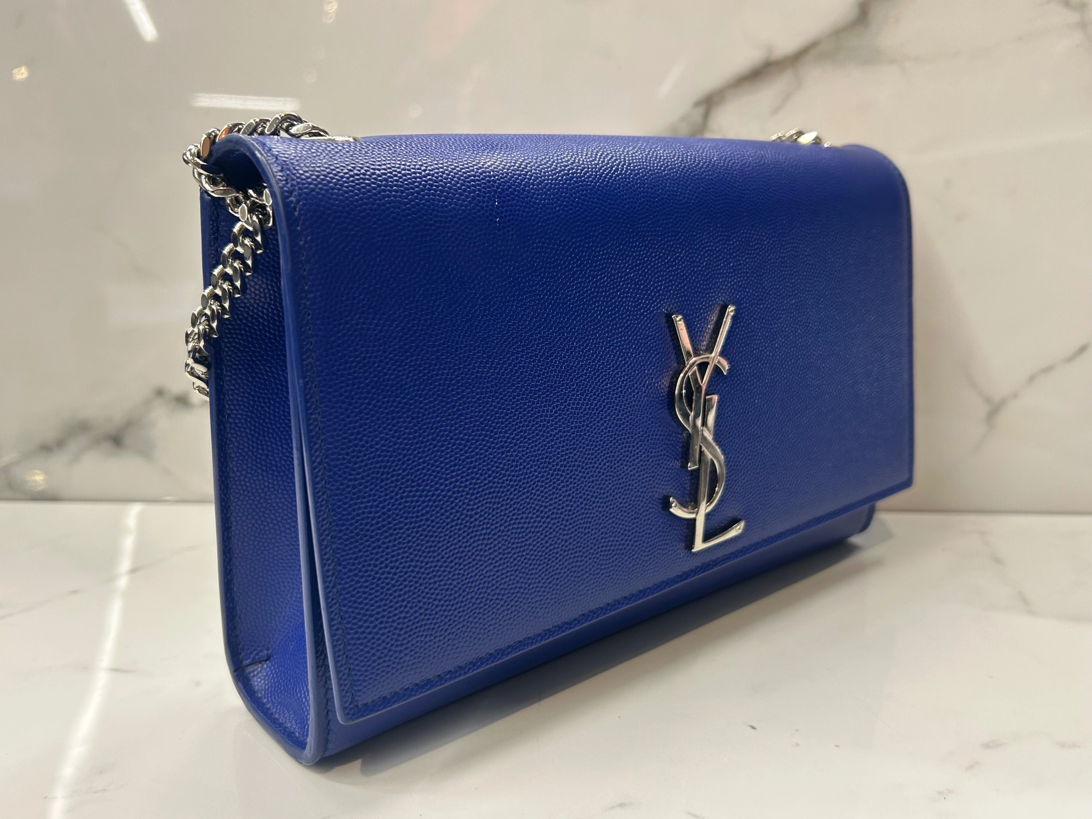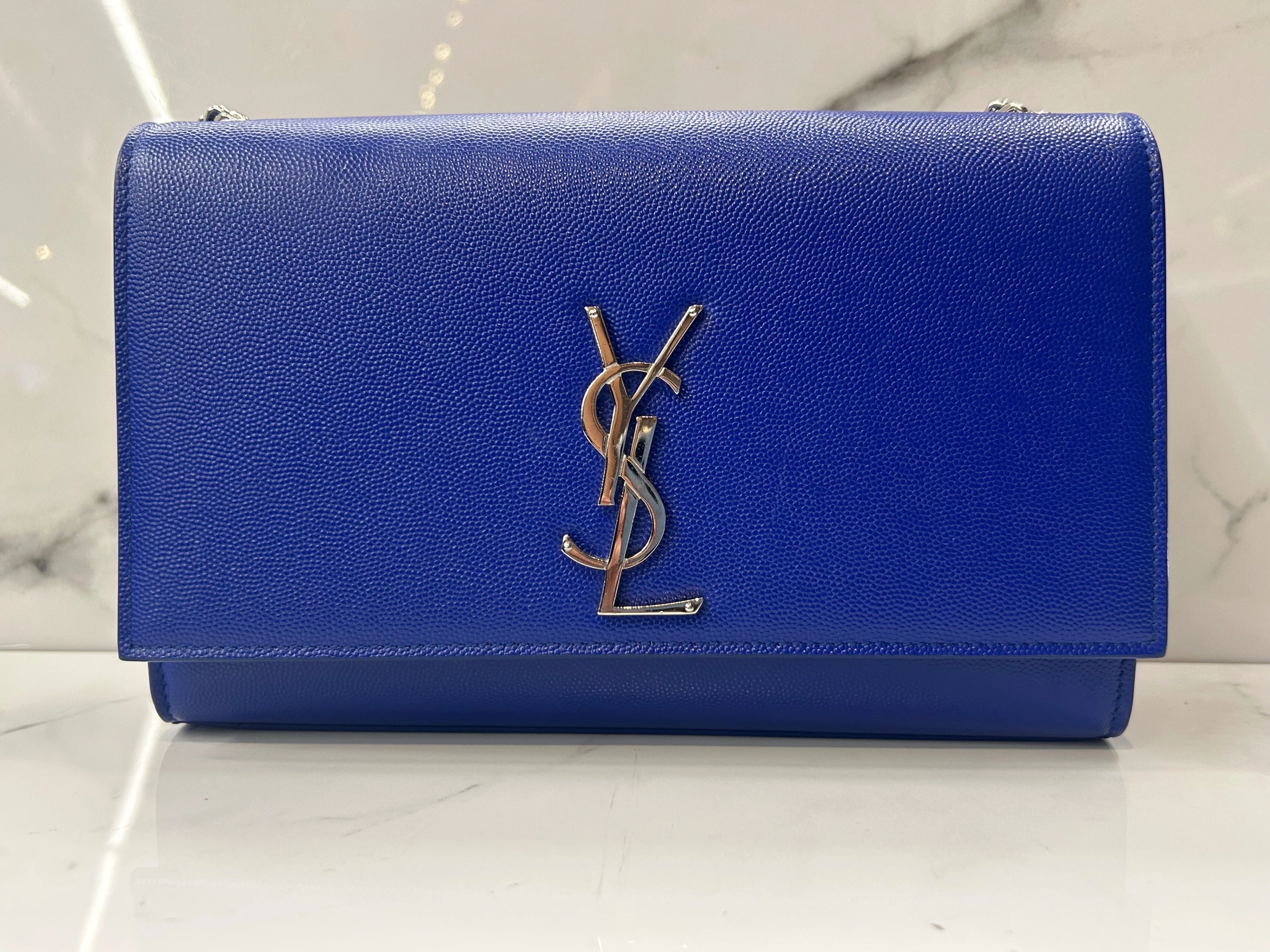 Saint Laurent YSL Kate Medium Satchel Blue Grained Leather Comes as seen in photos $1600 Available at 4 Seasons Pawn Shop & Gold Buyer (Newton Location) 7155 King George Blvd Surrey, BC Canada We are open 9:30 am - 6:00 pm Monday - Saturday and 11:00 am - 6:00 pm on Sundays. For more information visit our shop or give us a call at 6O4-592-O223 We accept multiple forms of payment including cash, e transfer, debit, visa, Mastercard, American Express, certified bank. We also have an interest free layaway plan available, ask us for more information. Thank you for your interest in our products. #113341-4