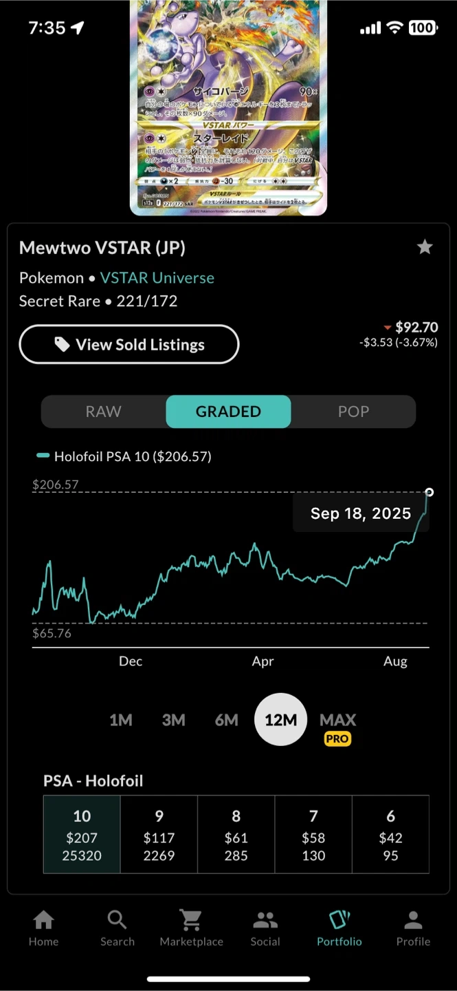 Selling a graded Mewtwo VSTAR Universe Pokemon card. It's graded PSA 10, meaning it's in gem mint condition! A great addition to any collection Open to trades and offers