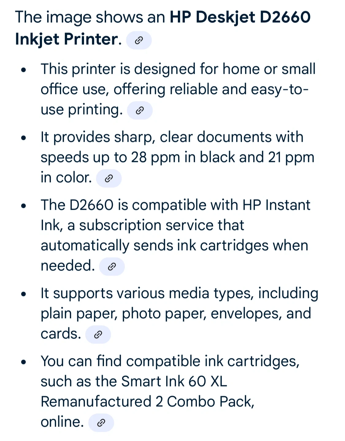 Selling a HP Deskjet D2660 inkjet printer. It's new condition and comes in its original box! This printer is designed for home or small office use, offering reliable and easy-to-use printing. It provides sharp, clear documents with speeds up to 28 ppm in black and 21 ppm in colour. It also supports various media types, including plain paper, photo paper, envelopes, and cards