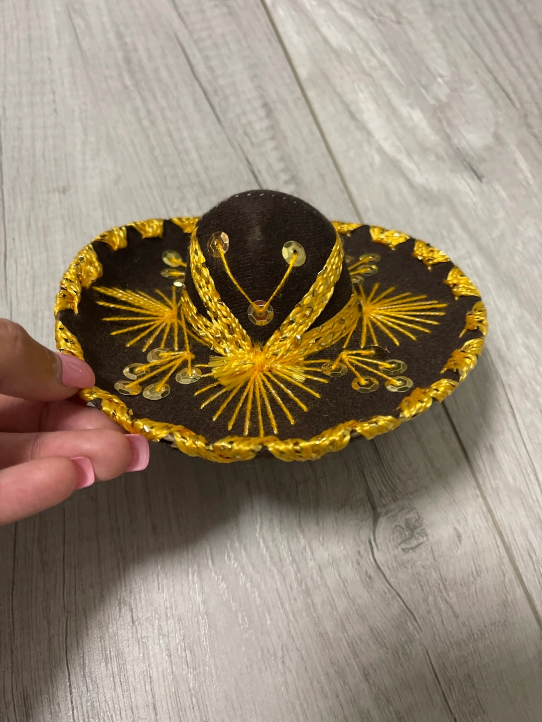 Selling a cute mini sombrero hat! It's brown with gold detailing. Perfect for parties or decoration