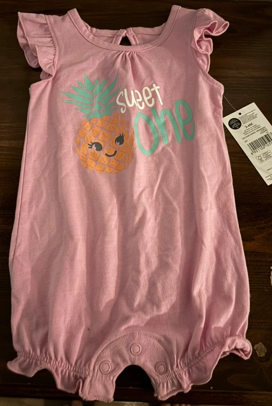 Super cute baby romper from George! This adorable pink romper has a sweet pineapple design and is in excellent condition. Size is 3-6 months.