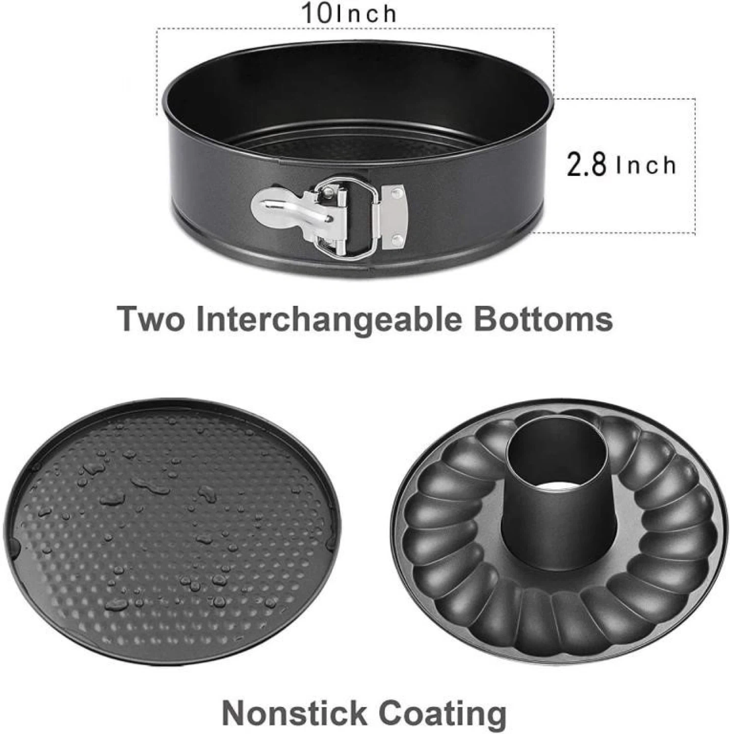 Selling a 10-inch springform cake pan! It comes with two interchangeable bottoms and a nonstick coating. Great for baking all kinds of cakes and desserts
