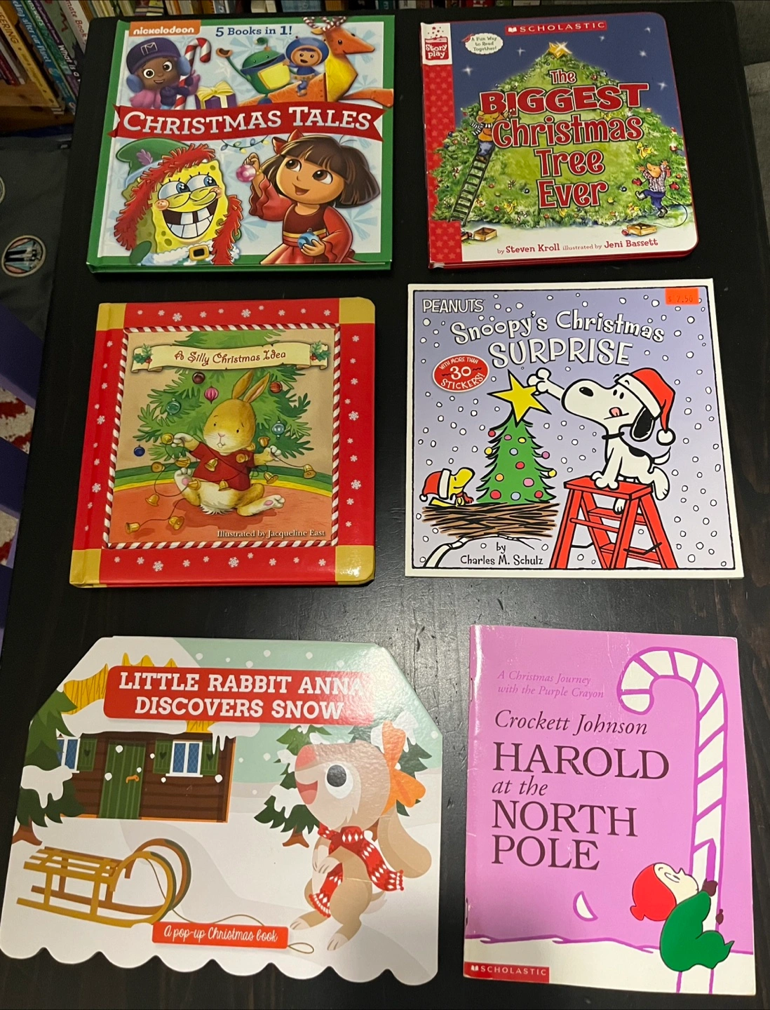 Selling a bundle of Christmas-themed children's books! Includes titles such as: - Nickelodeon Christmas Tales (5 books in 1) - The Biggest Christmas Tree Ever by Steven Kroll - A Silly Christmas Idea illustrated by Jacqueline East - Peanuts Snoopy's Christmas Surprise - Little Rabbit Anna Discovers Snow - Harold at the North Pole by Crockett Johnson