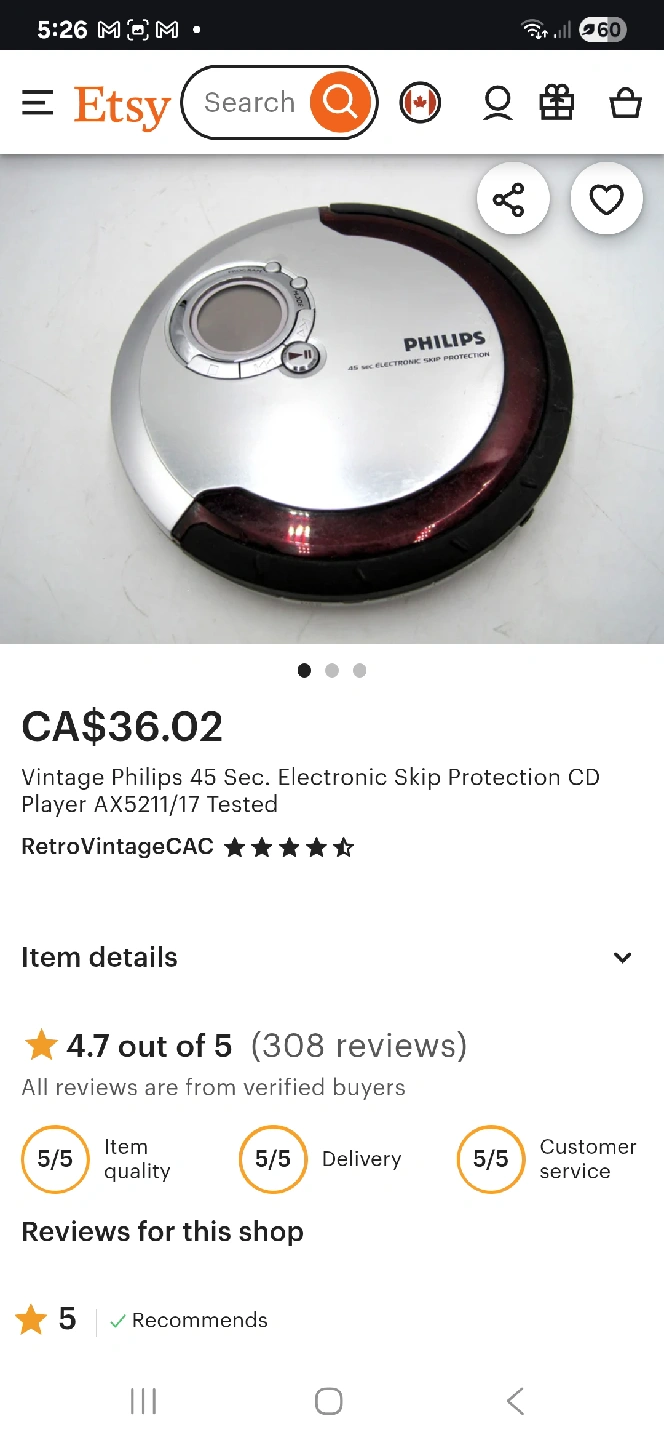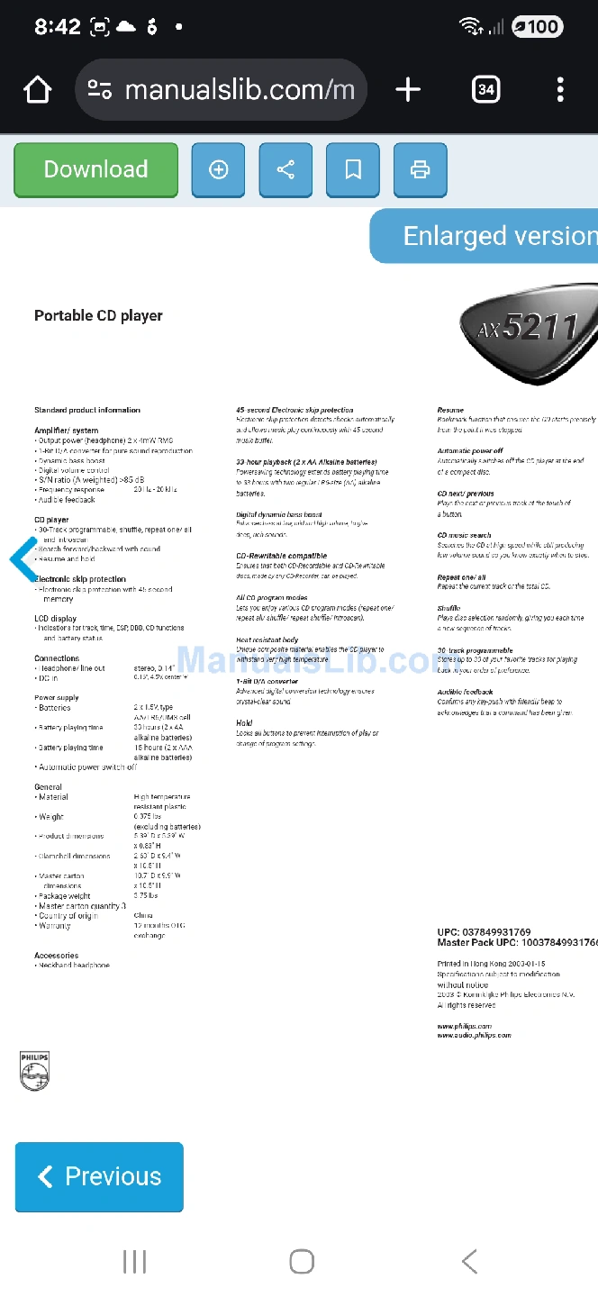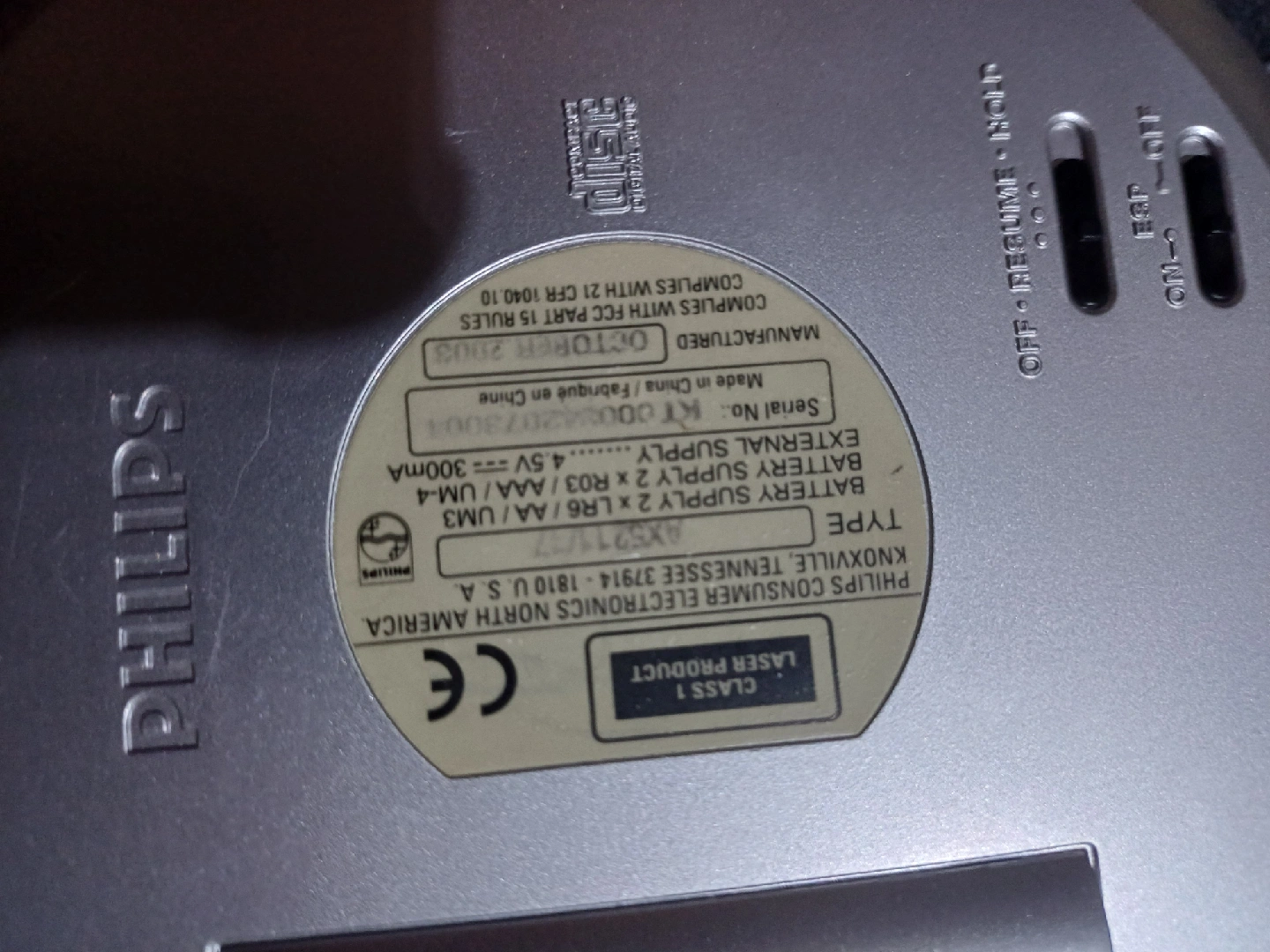 Philips portable CD player, model AX5211. 45 sec ELECTRONIC SKIP PROTECTION. Includes DC power adaptor and also operates with 2 AA batteries. Works great - just tested. Manual can be found at: https://www.manualslib.com/manual/309398/Philips-Ax5211.html