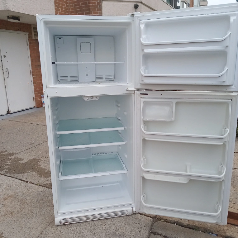 Selling a Frigidaire refrigerator in white. It's in good working condition and ready for a new home. Perfect for extra storage or as your main fridge!