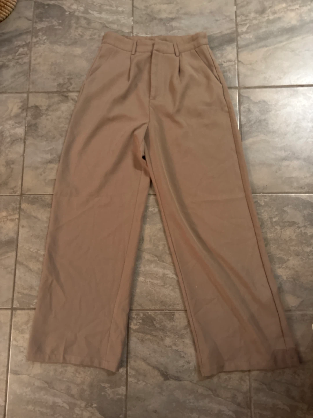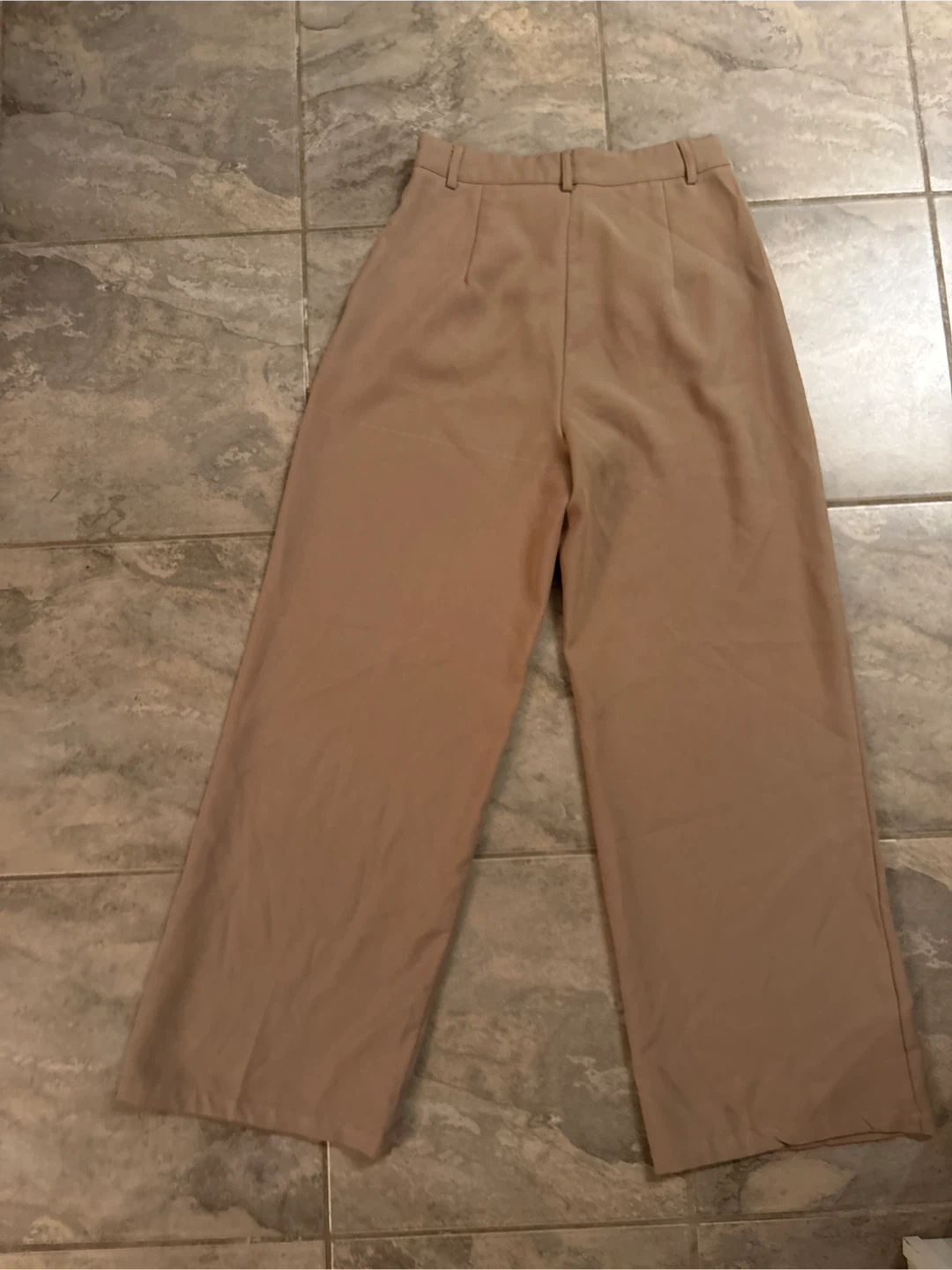 Selling a pair of beige wide-leg pants. They're in great condition and ready for a new home! Perfect for a comfy and stylish look.