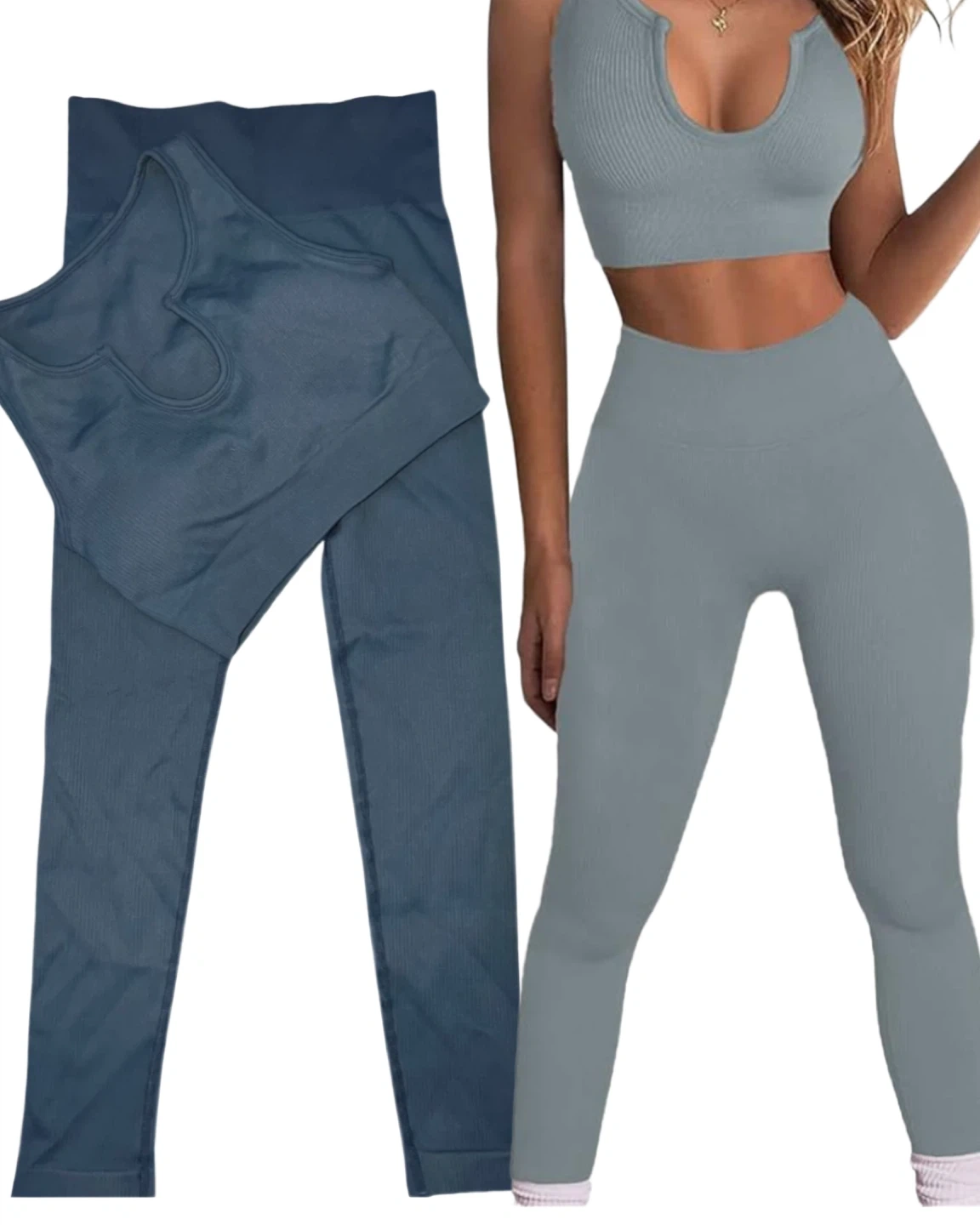 Check out this cute ribbed knit activewear set! It includes a sports bra top and high-waisted leggings, perfect for workouts or lounging around at home. The blue colour is really nice too!