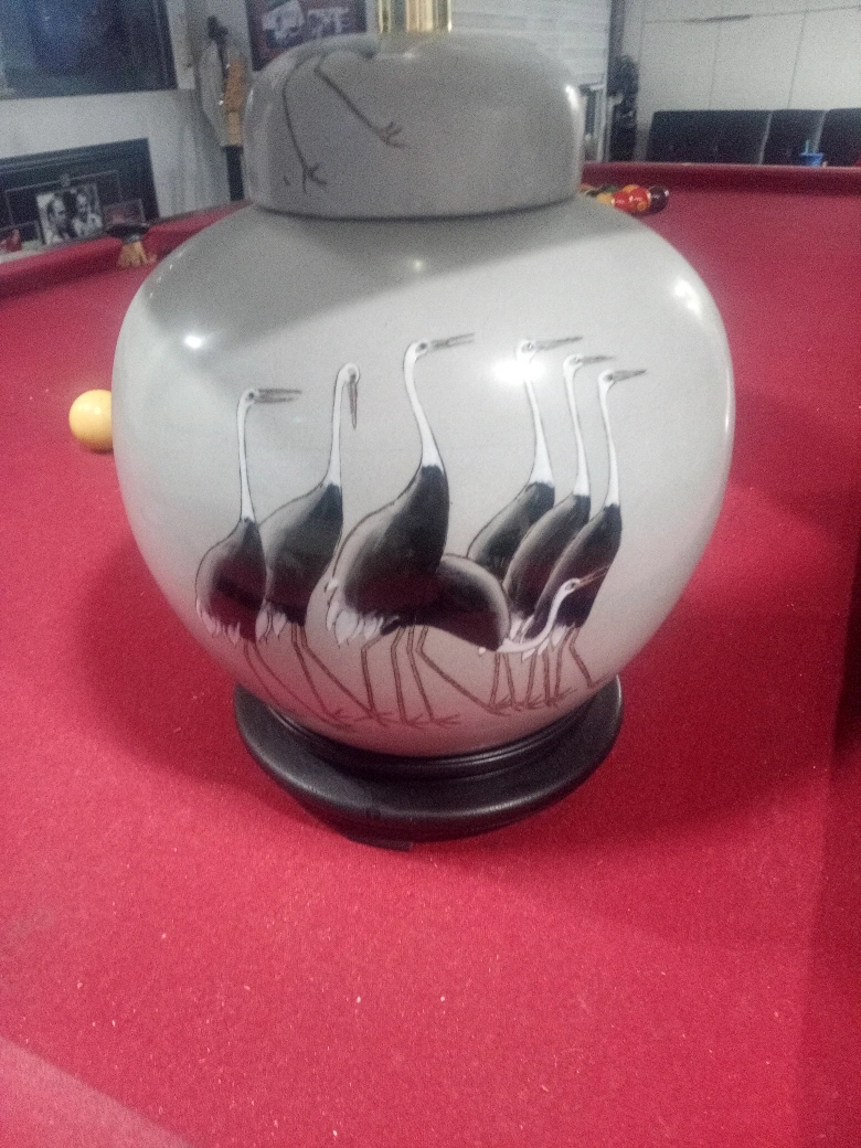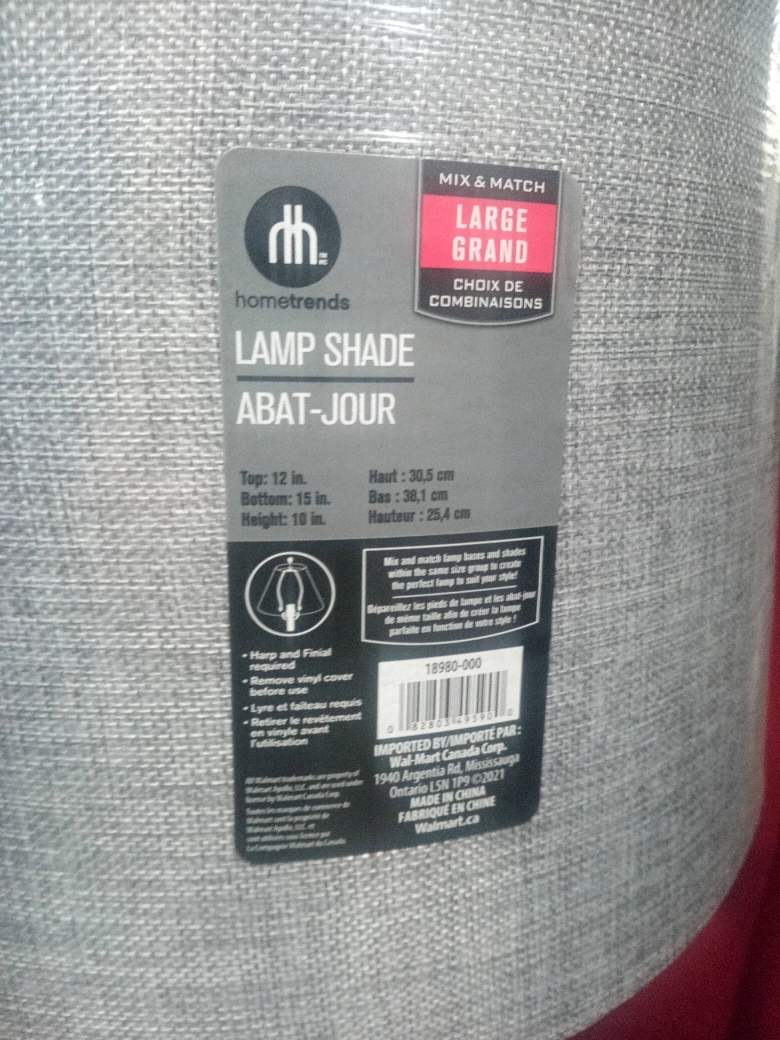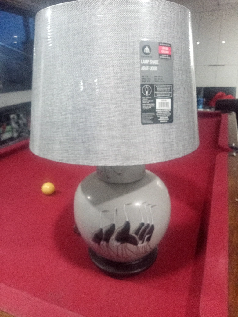 Selling a Hometrends lamp with a large lamp shade and a ceramic base with a crane design. The shade measures 12 inches at the top, 15 inches at the bottom, and has a height of 10 inches. It's in great condition and ready to brighten up any room