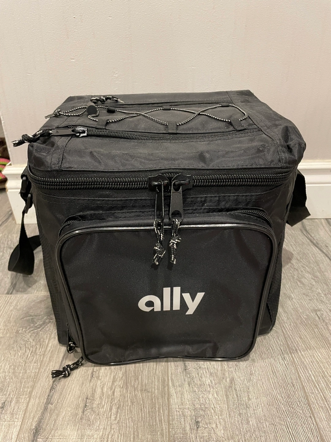 Keep your food, drinks and snacks organized with this sturdy bag! It's black and features a practical design with multiple compartments for easy organization. Perfect for picnics, camping, or road trips! Porch pick up Yonge and 16th
