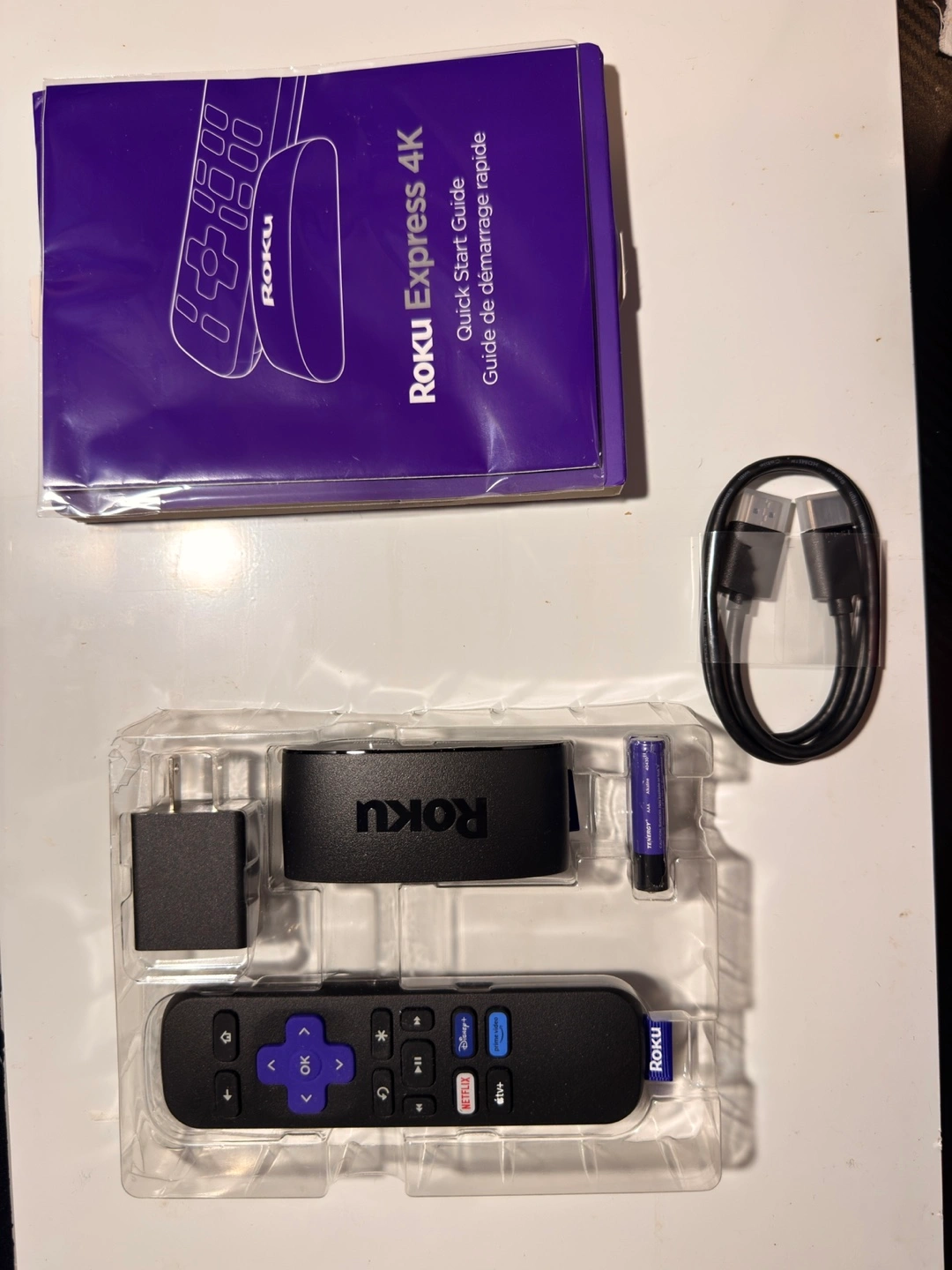 Selling a brand new Roku Express 4K streaming media player! It's still in its original packaging and includes all the components: the Roku device, remote, power adapter, and quick start guide. Get ready to enjoy your favourite shows and movies in stunning 4K resolution!