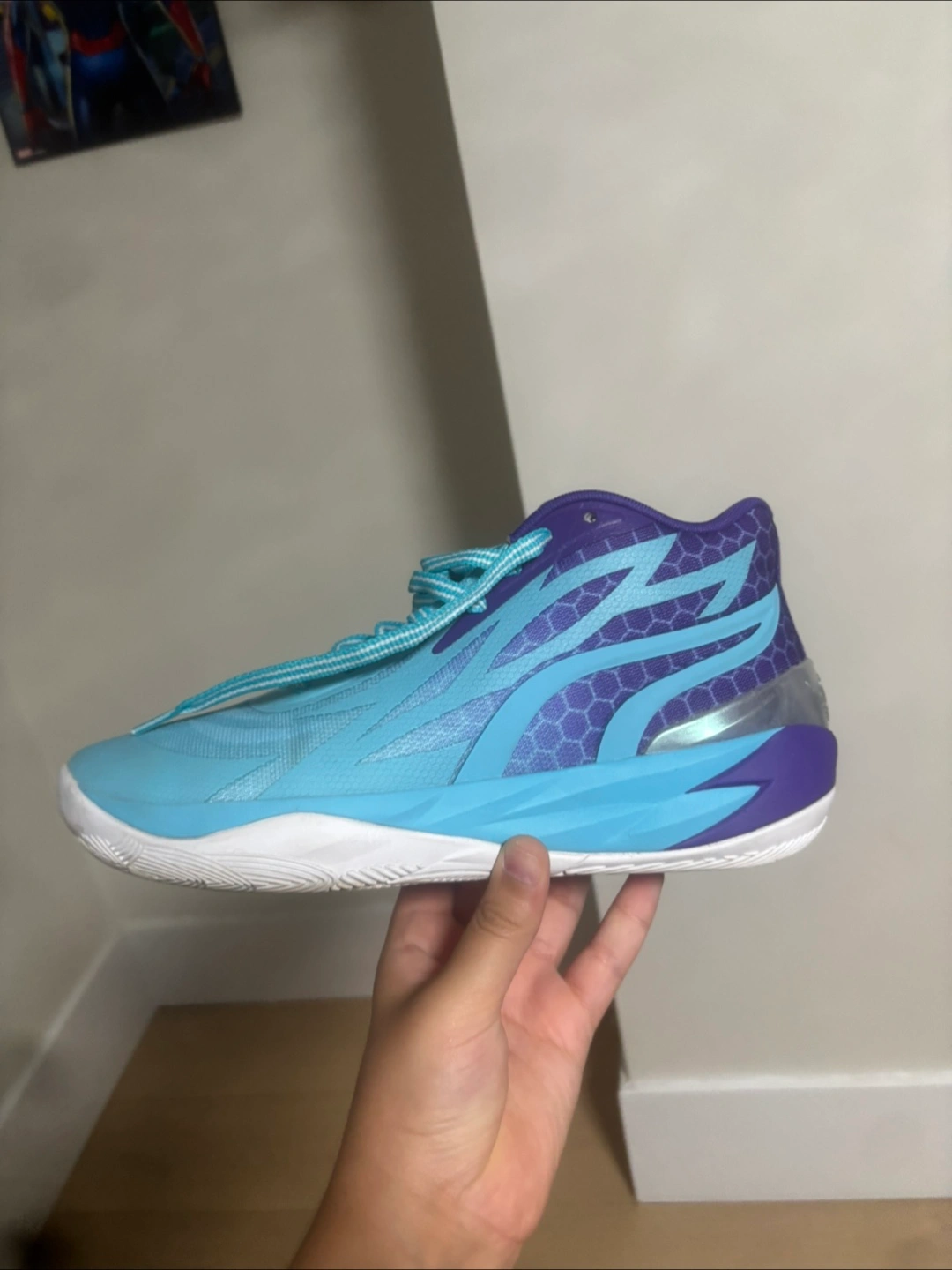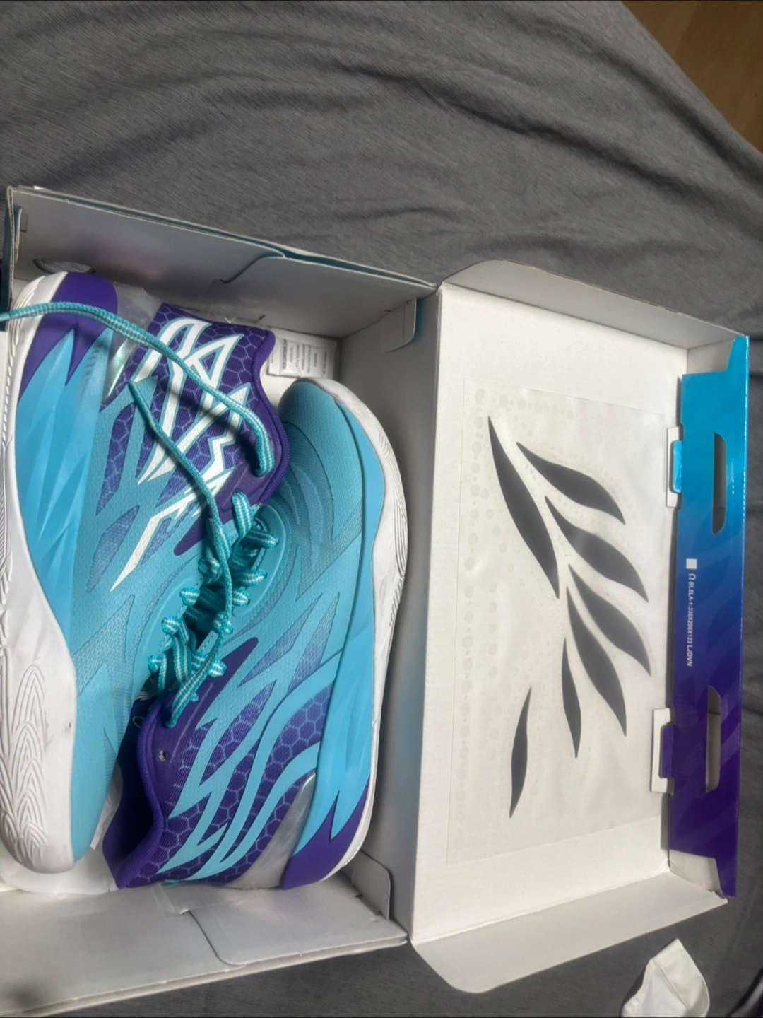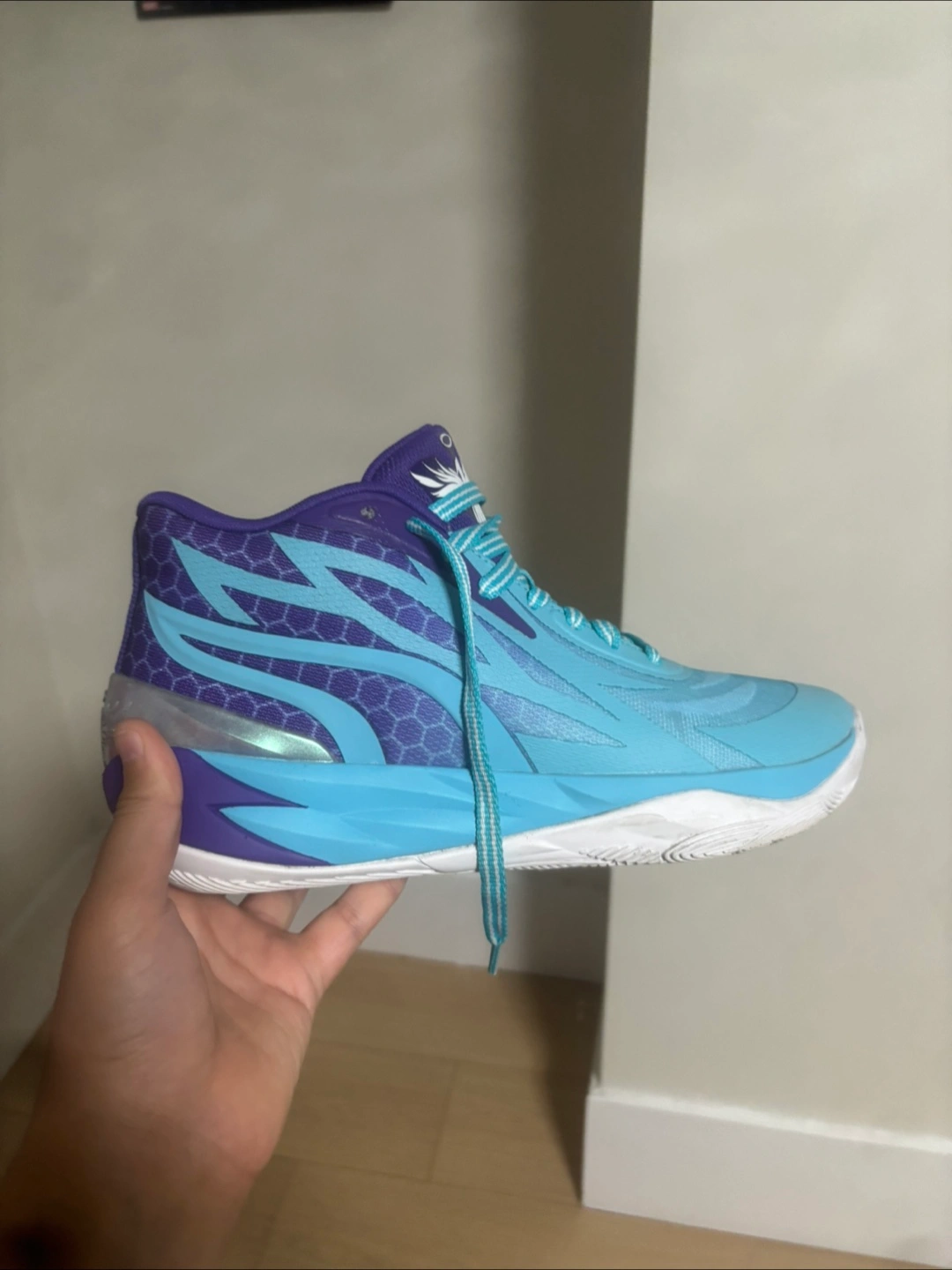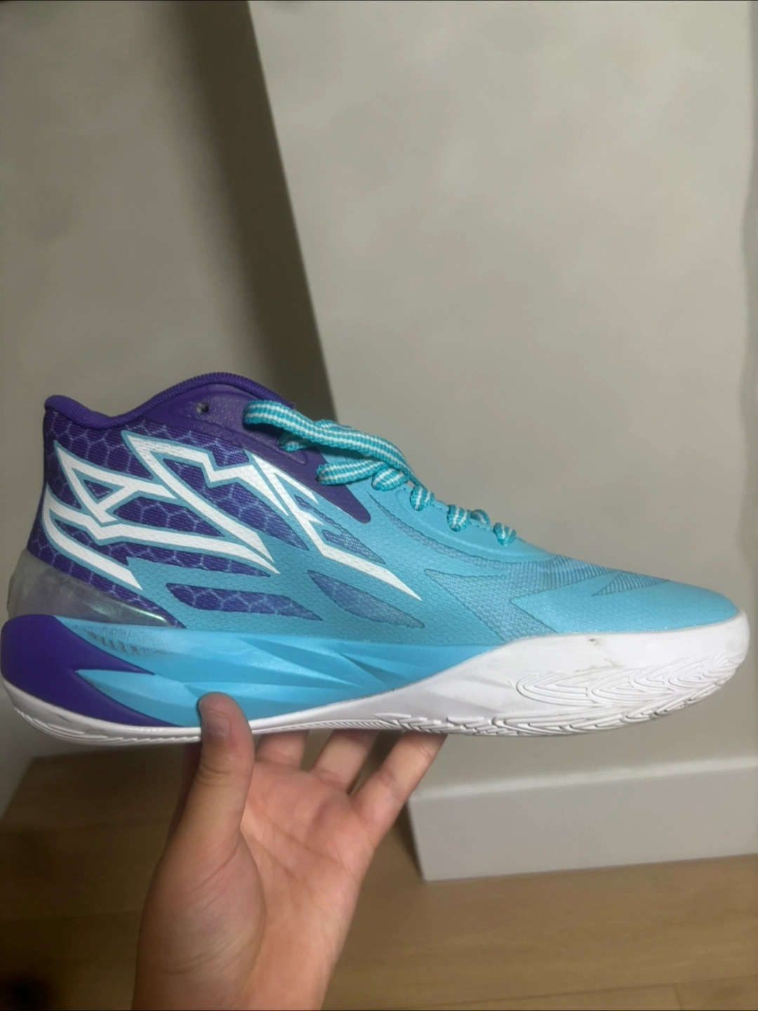 Selling a pair of Puma MB.02 LaMelo Ball basketball shoes in the Blue Hive colourway! These shoes are in great condition and ready for the court or casual wear. The unique design and comfortable fit make them a standout choice. Never used on court. Size 8