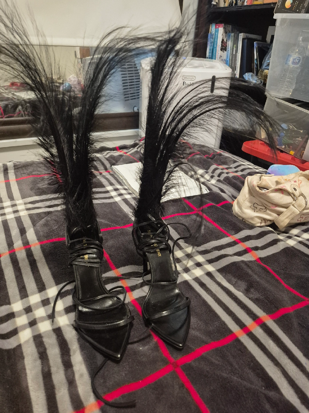 Selling a pair of Saint Laurent Paris heels with feather detail. They're a size 36 and made in Italy. These are a unique statement piece!