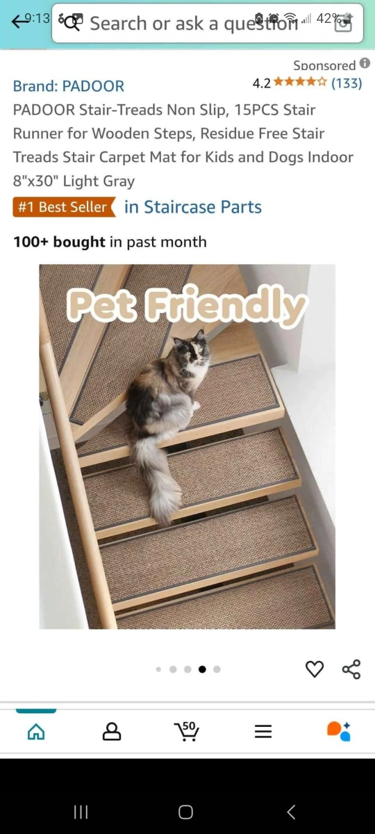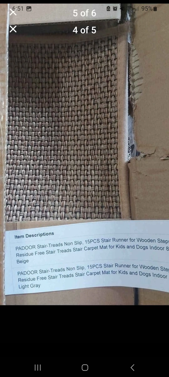 Selling a set of PADOOR stair treads! This is a 15-piece set of non-slip stair runners designed for wooden steps. They're residue-free and perfect for homes with kids and dogs. The size is 8"x30" and the colour is beige