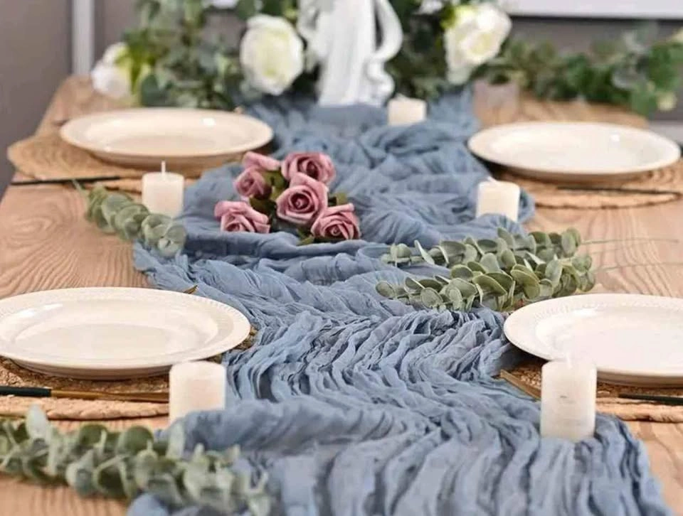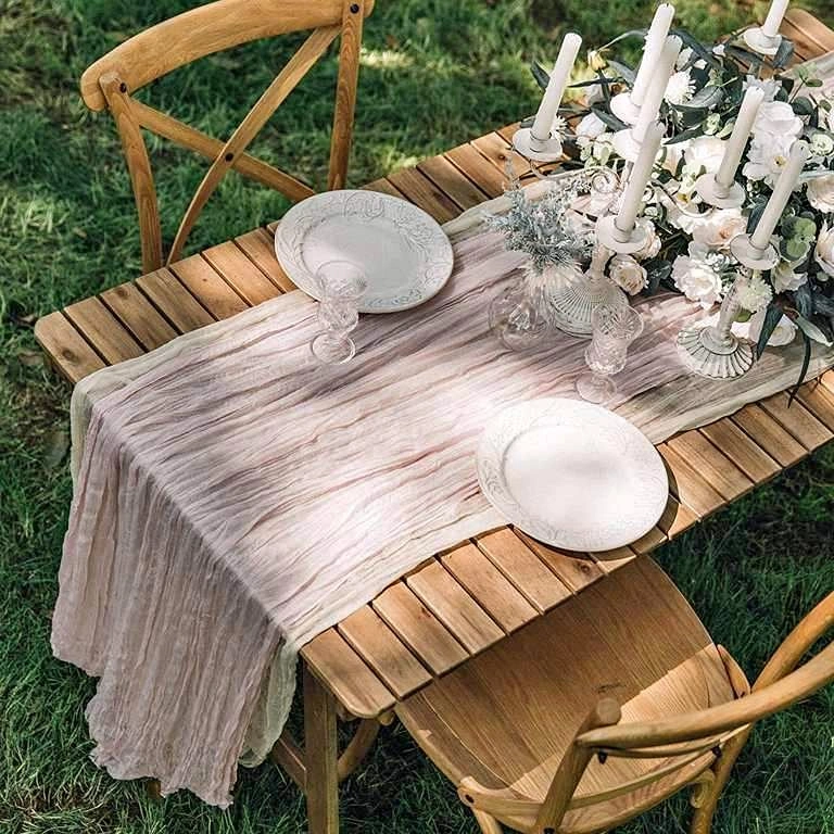 New. Soft fabric. Cheesecloth/gauze polyester blend. Please mention the size you're interested in, the colour and the number of runners you wish to buy 🙂 Pickup is in Downtown London. Pricing is as follows: 35 x 71"- $12 35 x 118"- $16 35 x 157"- $18 Also available to rent depending on the availability. Thank you 🌹