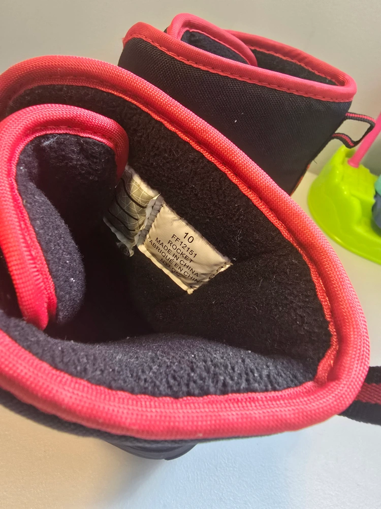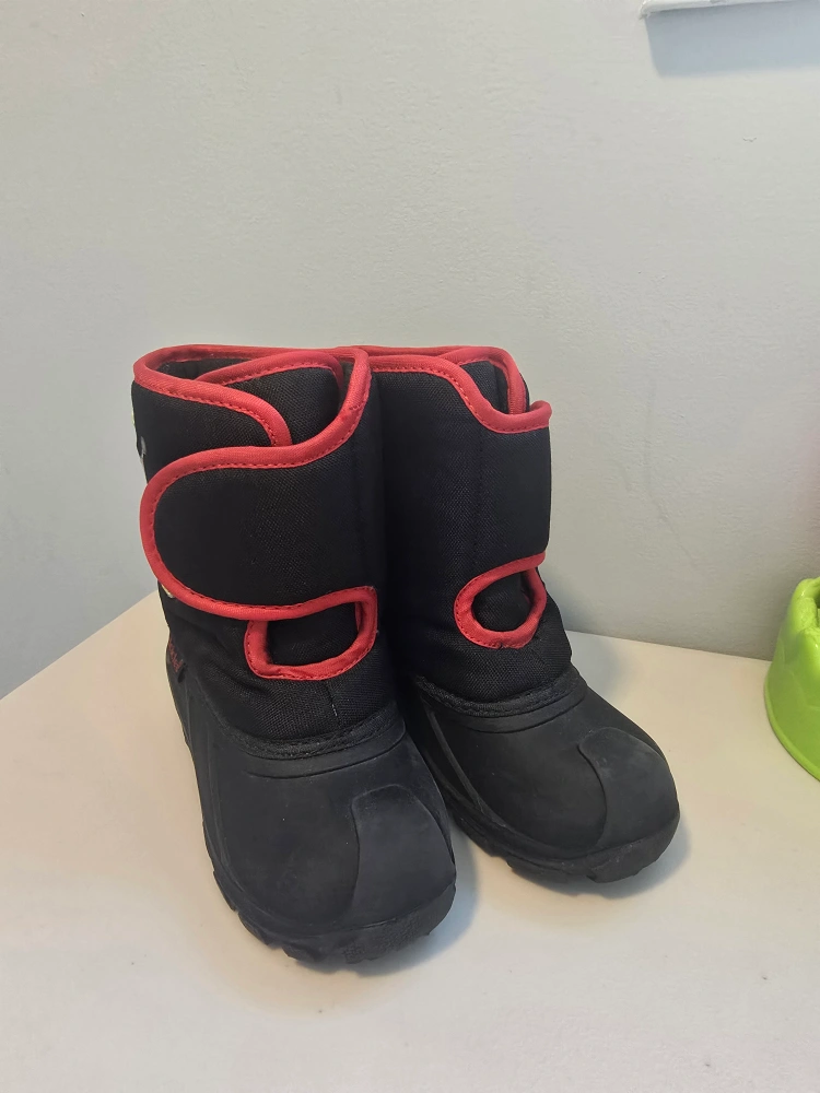 SIZE 10 Kids/Toddler Pick up in North York Keele St and Wilson Ave area Gently used ▶️ Multi Family Account / Cash only AI: Keep your little one warm this winter with these Icicles winter boots! They are black with red trim and feature a fun rocket design. The boots are in great condition and ready for some snowy adventures. Size 10.