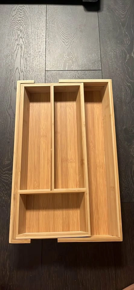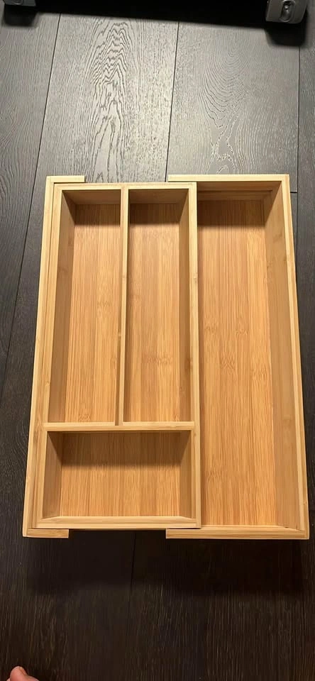 Brand new high quality wooden cutlery easy-slide holder. Never used. Can be used as a multifunctional organizing unit too.