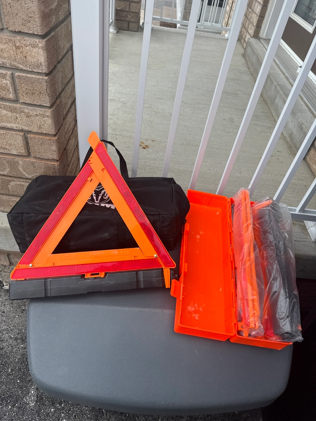 Selling a Ram Emergency Roadside Kit. Includes a warning triangle, flares and a carrying bag.