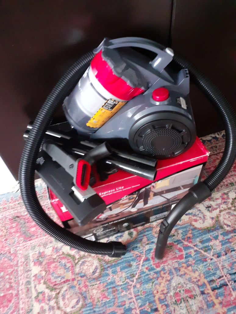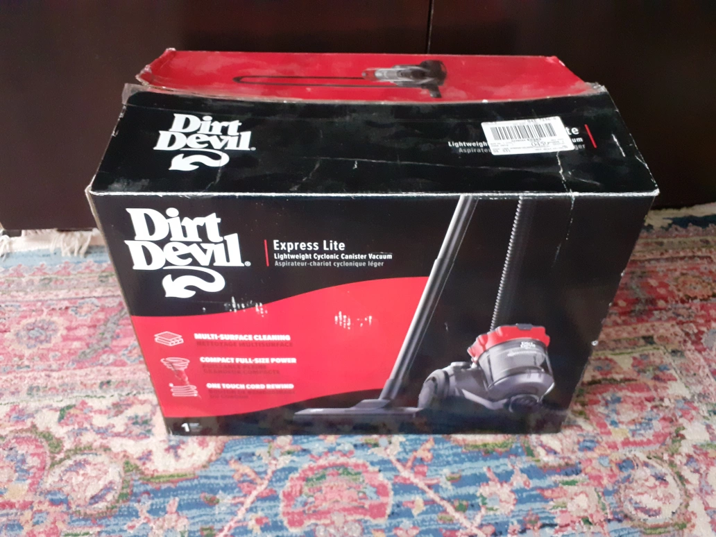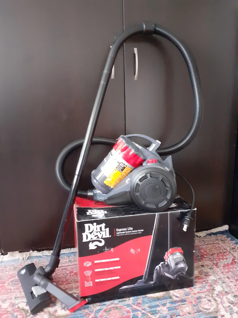Selling a Dirt Devil Express Lite Lightweight Cyclonic Canister Vacuum. It features multi-surface cleaning and compact full-size power. It also has a one-touch cord rewind. It comes with the original box Pick up Yonge &Eglinton Cash only
