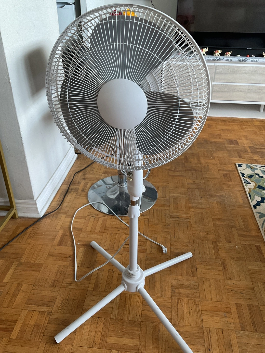 Selling a white stand up fan. It's in great condition and ready to keep you cool during these hot summer days! It is a simple and effective way to circulate air in any room