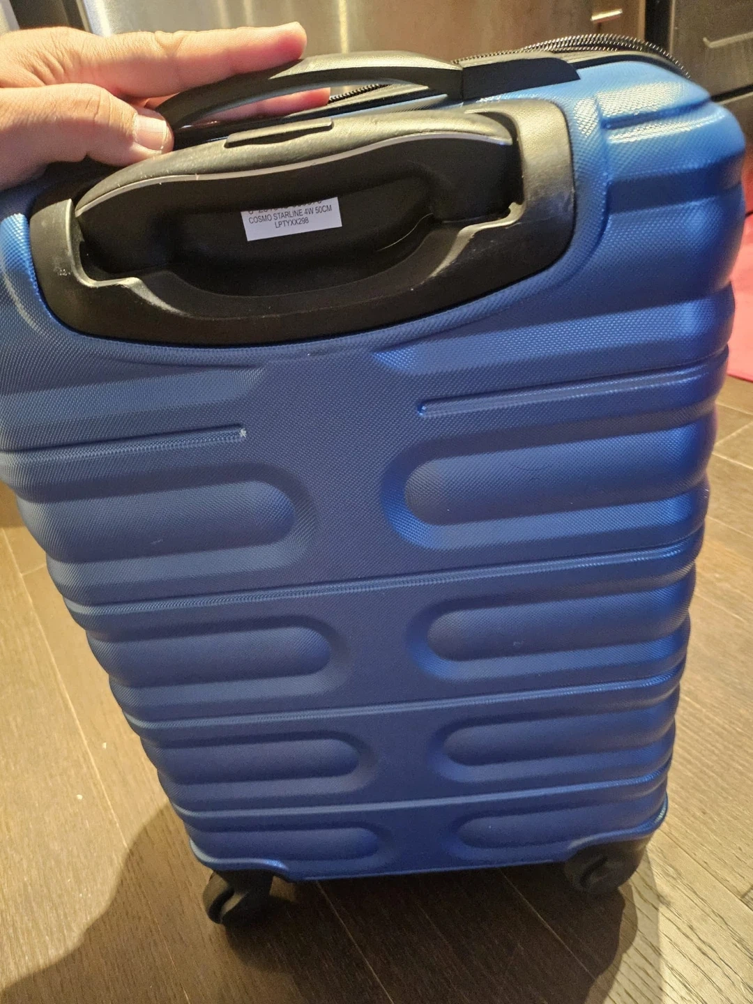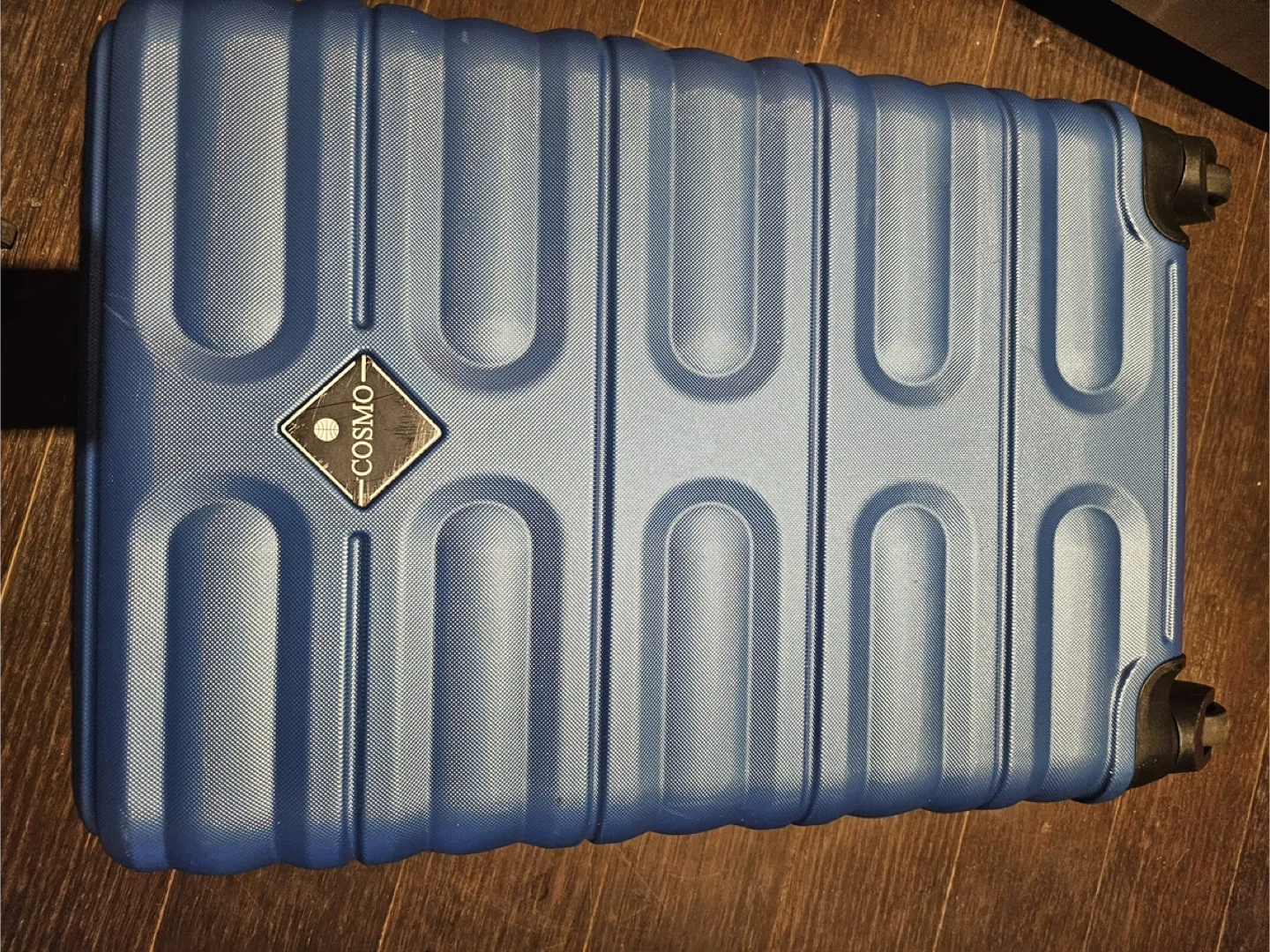 Selling a Cosmo Starline suitcase in blue. It's in good condition and ready for your next trip! There are some minor marks on the interior lining, but otherwise it's perfectly functional.