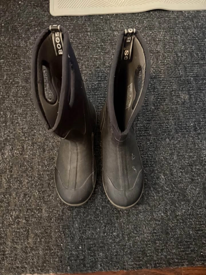 Selling 3 pairs of size 10 men’s boots in good condition: • Pair 1: Sorel-style winter boots with faux fur lining (warm & waterproof) • Pair 2: Bogs waterproof insulated boots • Pair 3: Rubber rain boots(great for rain or mud) Bundle Price: $30 for all 3 pairs Individual Price: $15 each Perfect for winter, rainy days, or working outdoors.