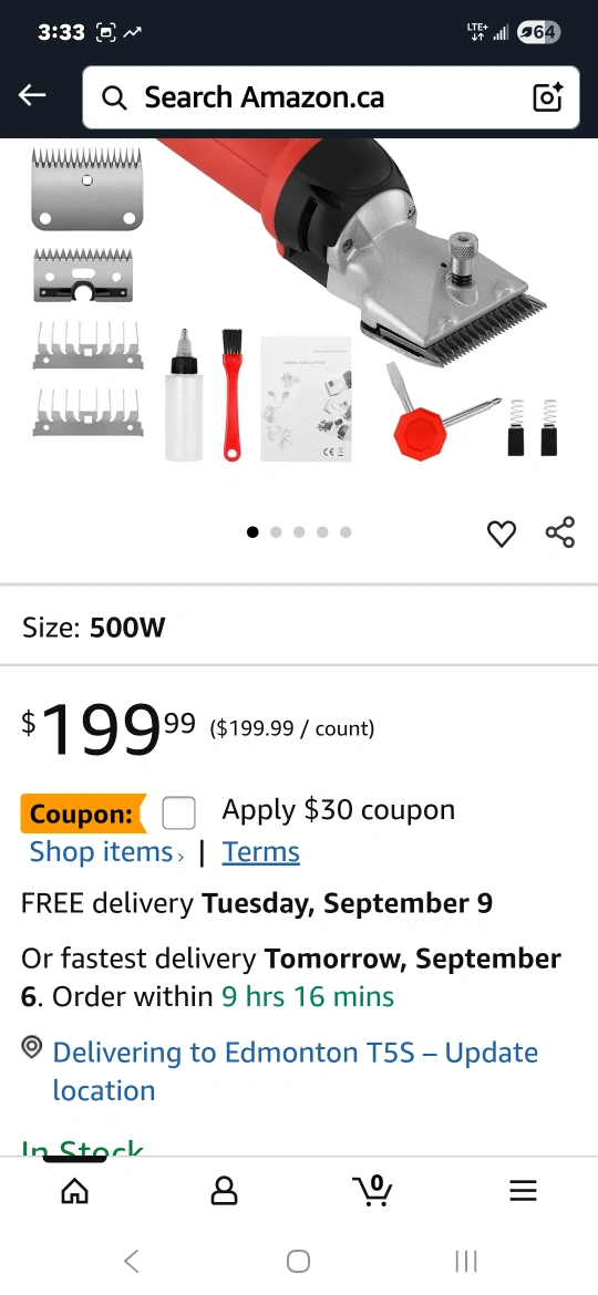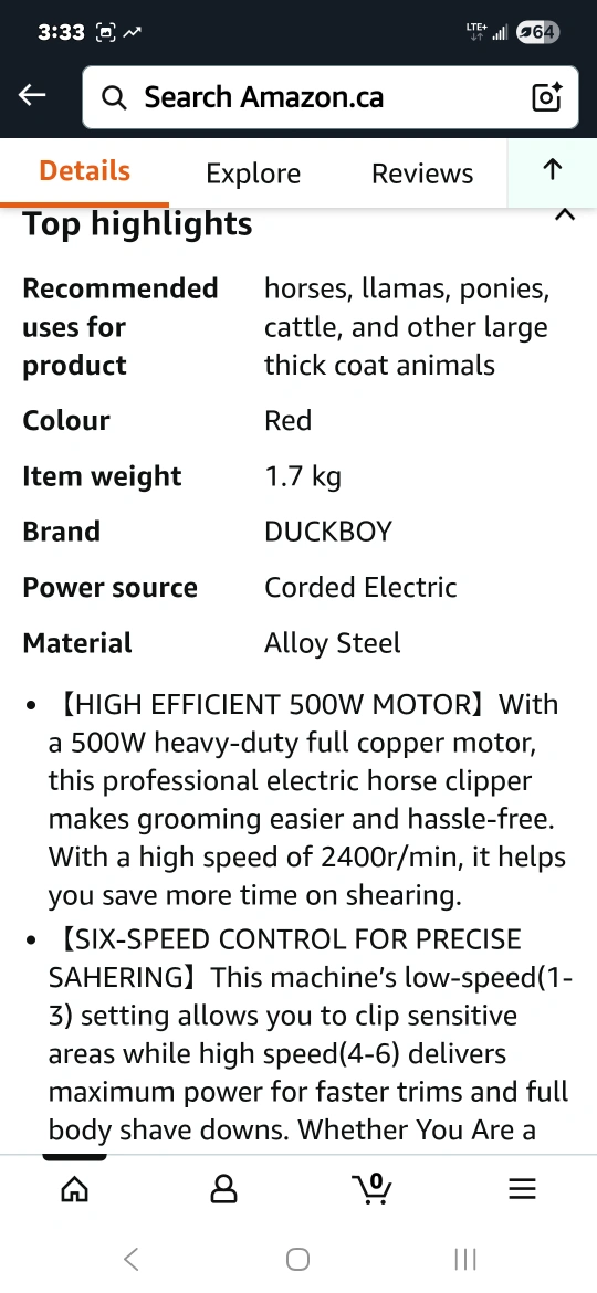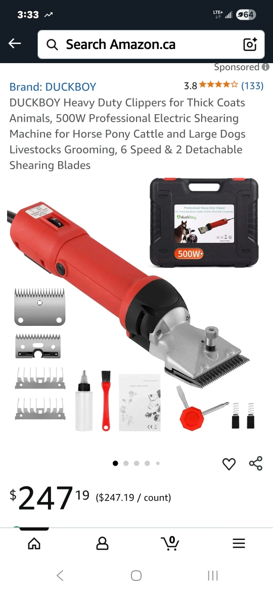 Get your animals groomed with these heavy-duty clippers! They are DUCKBOY brand, with a 500W motor. These clippers are designed for thick coats on animals like horses, llamas, ponies, cattle, and large dogs. The clippers have 6 speeds and 2 detachable shearing blades. The case is included