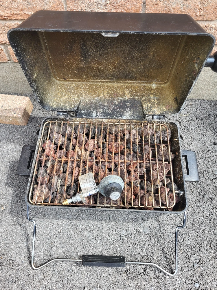 Selling a portable gas grill that comes with ceramic briquettes. It's perfect for small spaces or taking on the go. Included are 50 ceramic briquettes to help with even cooking.