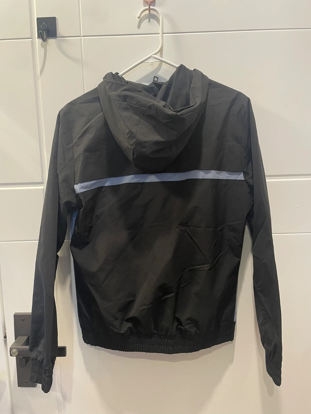Selling a Grand Shade jacket in black and blue. It's in great condition and ready for a new home! It features a hood and a unique colour block design.
