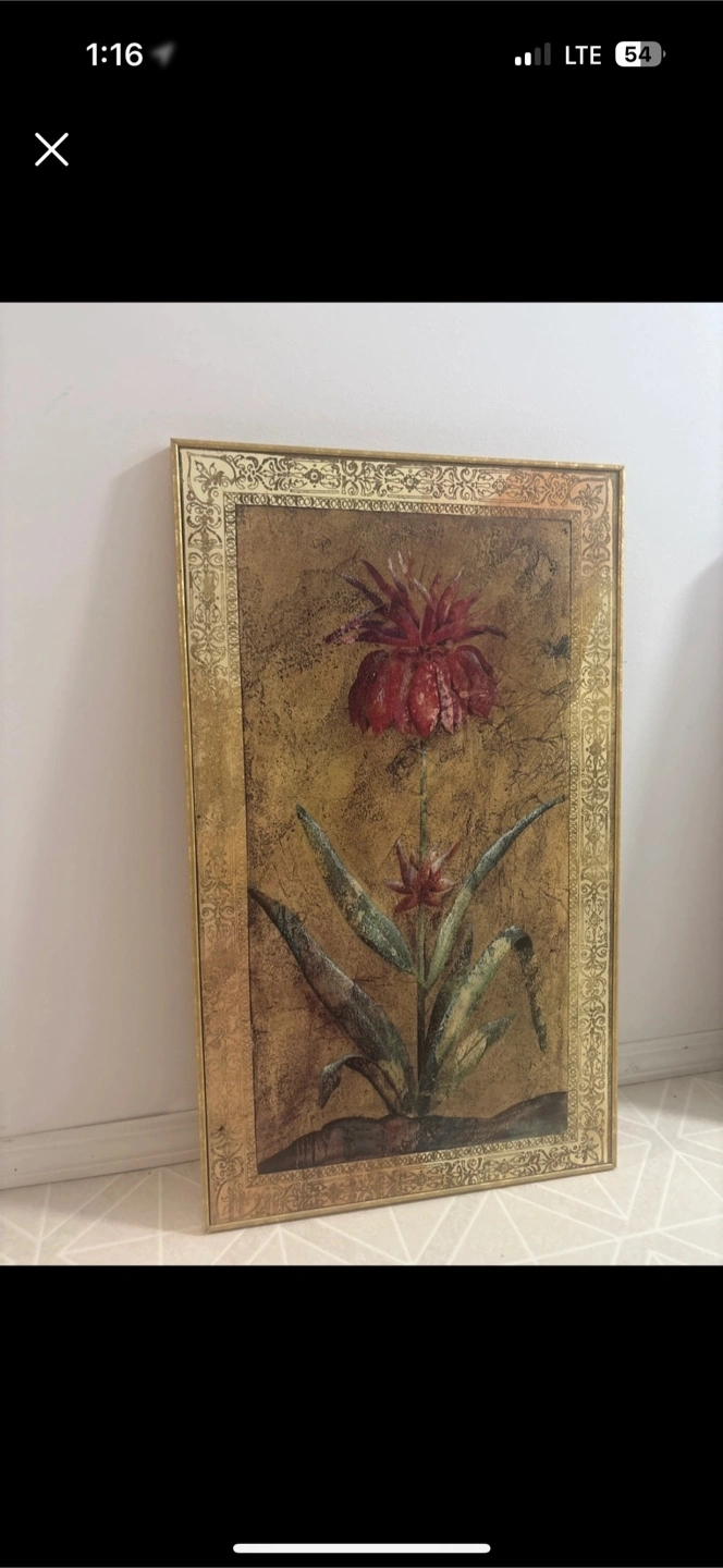 Framed wall art featuring a floral print. The frame is gold-toned, and the print has a textured, vintage look. Perfect for adding a touch of elegance to any room