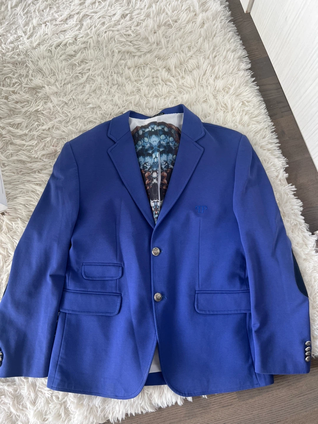 Selling a Philipp Plein blazer in a vibrant blue! The size is 54, It's in great condition and ready for a new home