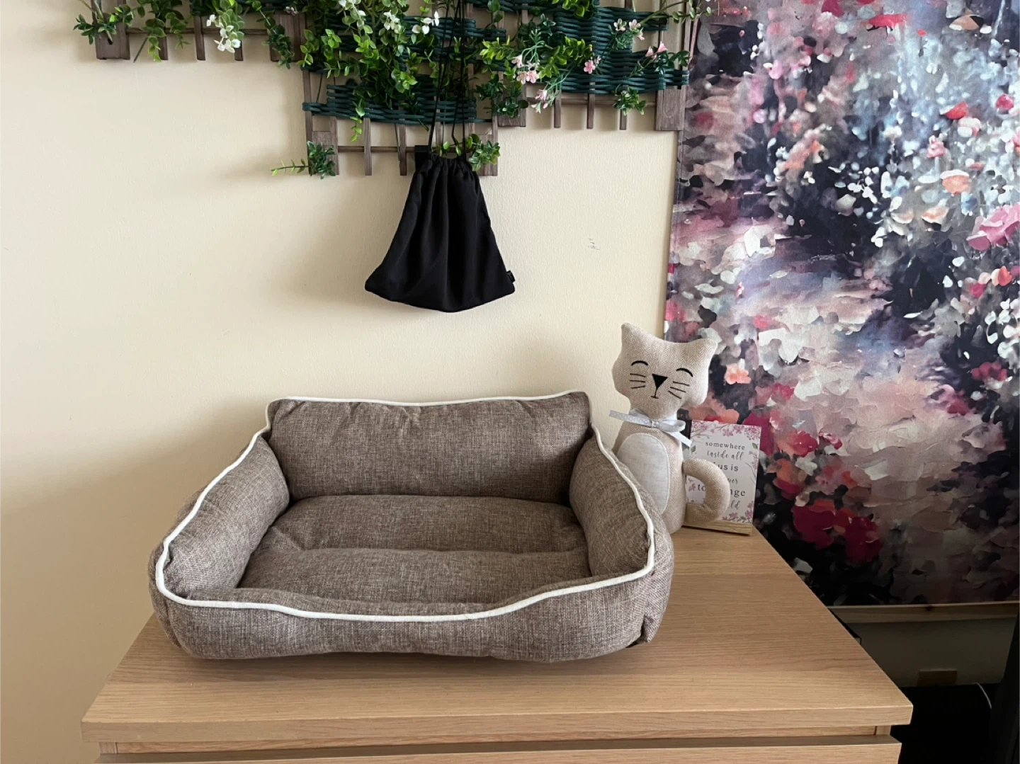 Looking to give your furry friend a comfy place to relax? This pet bed is like new and ready for a new home! It features a soft, cushioned interior and a stylish brown exterior that will look great in any room. The bottom has a non-slip surface to keep it in place. We just got it 2 weeks ago for our cat but she doesn’t want to use it. It’s big enough to fit a small dog too.