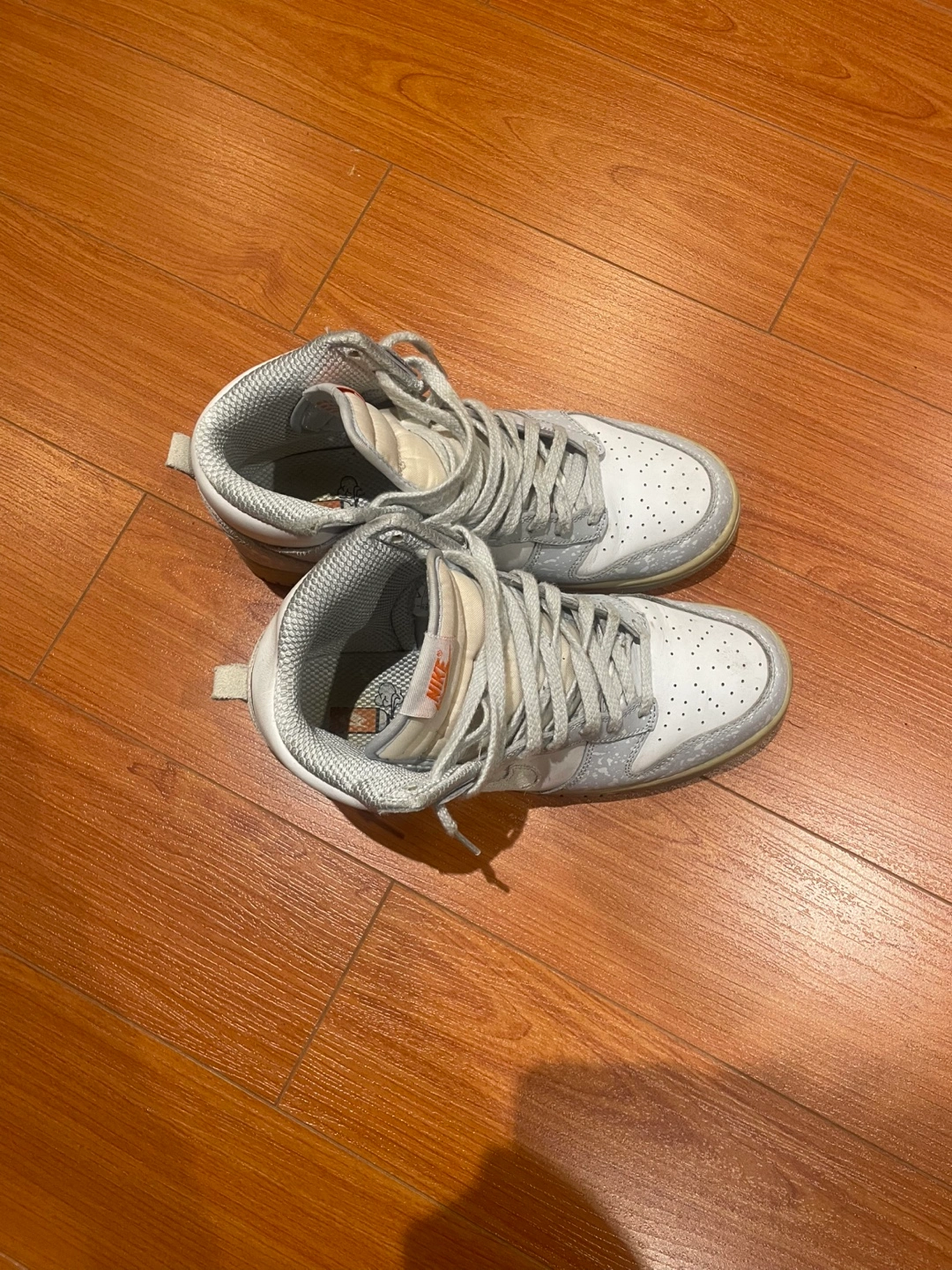 Selling a pair of Nike Dunk High white and grey. They are in good condition and ready for a new home. Size is US 8