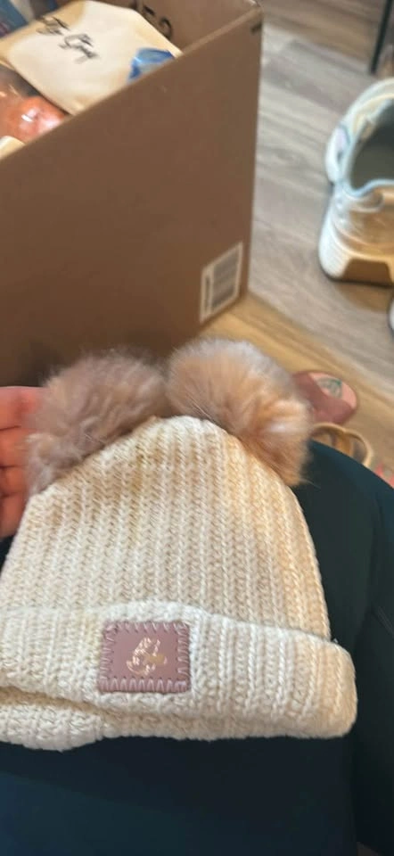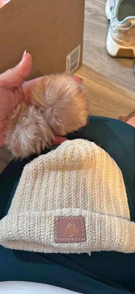 3-6 months. Love your melon winter hat. Part of their Disney collection. Pom poms come off for easy washing. Pick up near Weston and Lawrence.