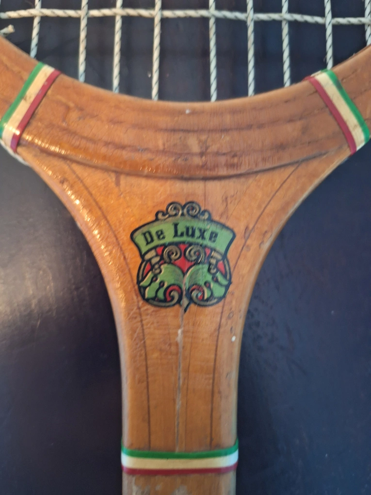 Vintage Wright & Ditson De Luxe tennis racquet. Most likely made before 1940s. Perfect for collectors or anyone looking for a unique piece of sports history