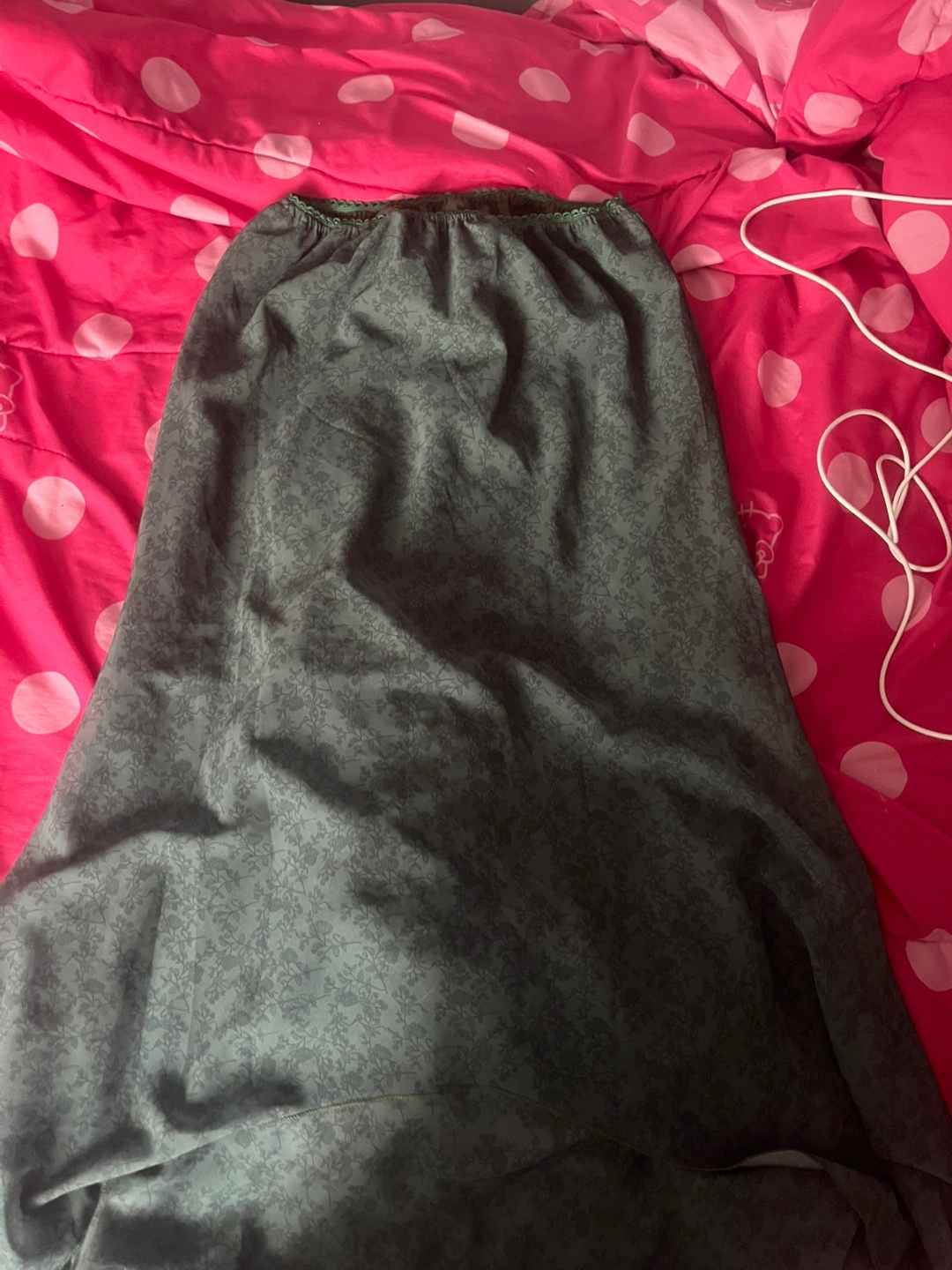 Selling a cute green floral skirt! It's a size small and in great condition. The floral pattern is subtle and the colour is a nice, muted green. Perfect for adding a touch of elegance to any outfit