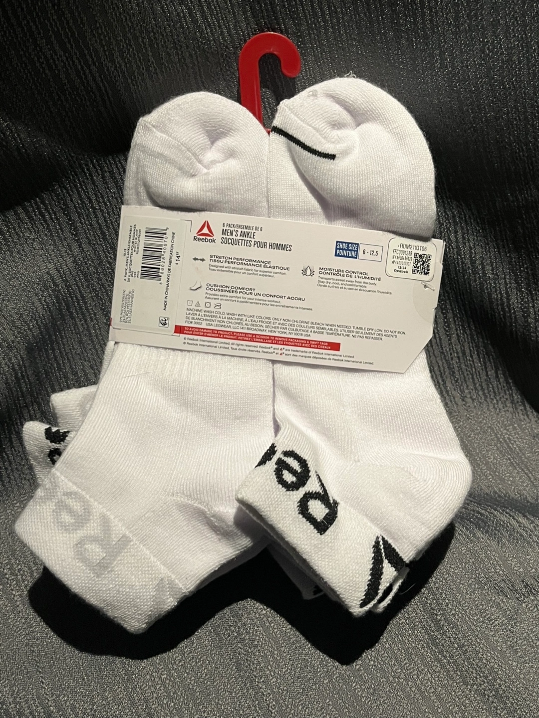 Get ready to step up your sock game with this 6-pack of Reebok men's ankle socks! These socks are designed for stretch performance and moisture control, keeping your feet comfy all day long. They fit shoe sizes 8 to 12.5. Perfect for workouts or everyday wear!
